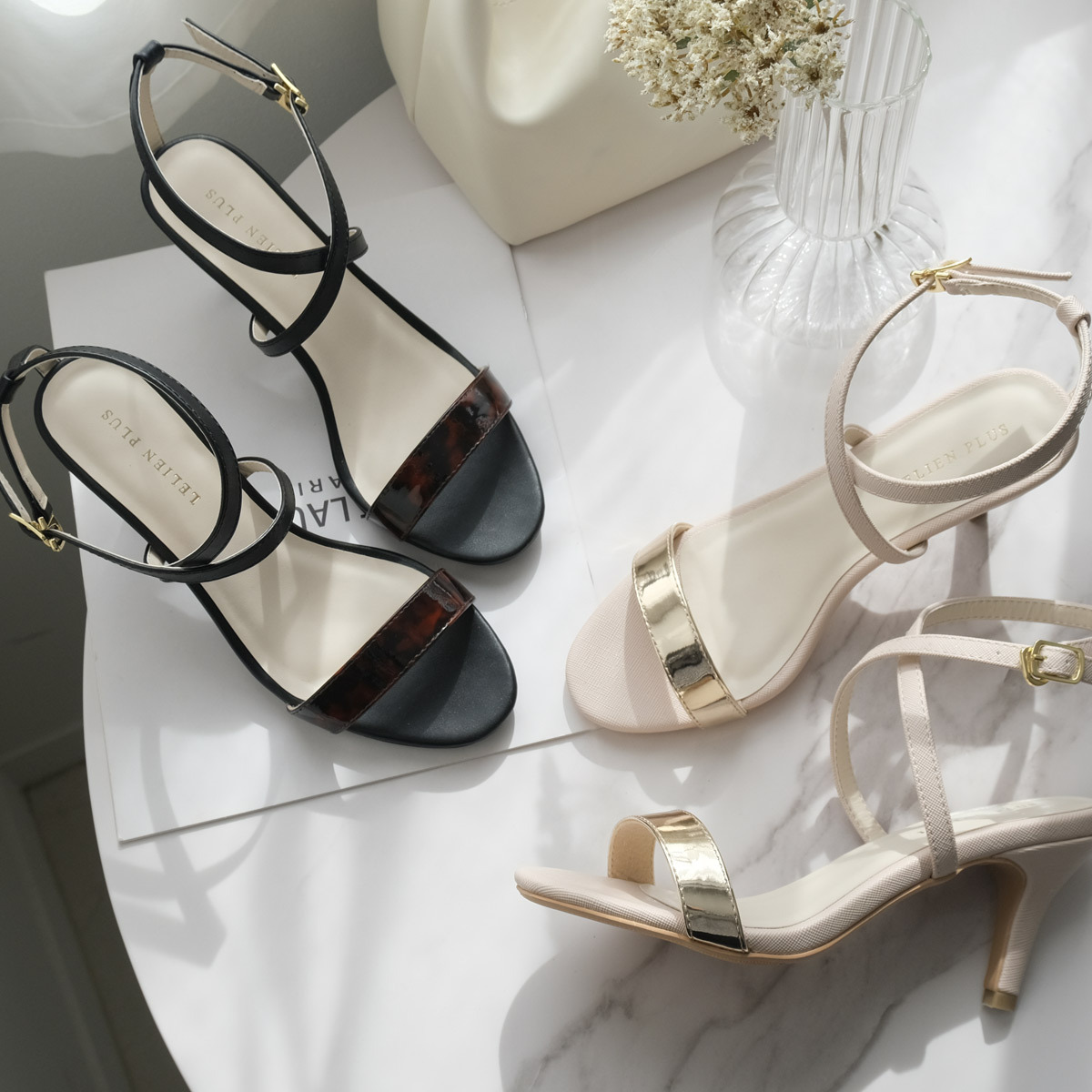 細帶交叉帶涼鞋和 8.5 公分細高跟,展現腿部線條,打造女性時尚!