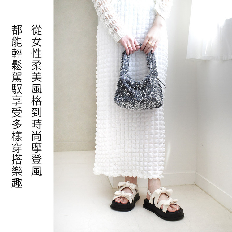 可自由安裝和拆卸的蝴蝶結!柔軟的鞋墊與鞋帶,穿起來舒適好走無負擔。