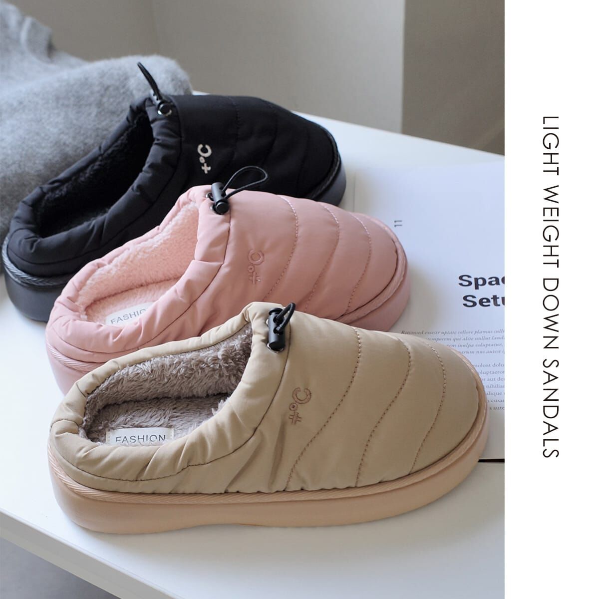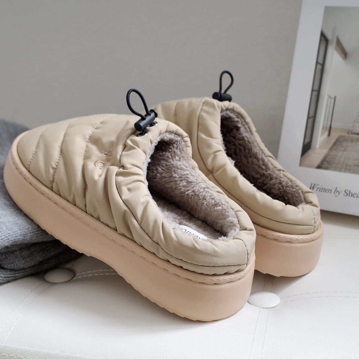 輕盈保暖、專為寒冷季節設計的厚底毛絨拖鞋。
