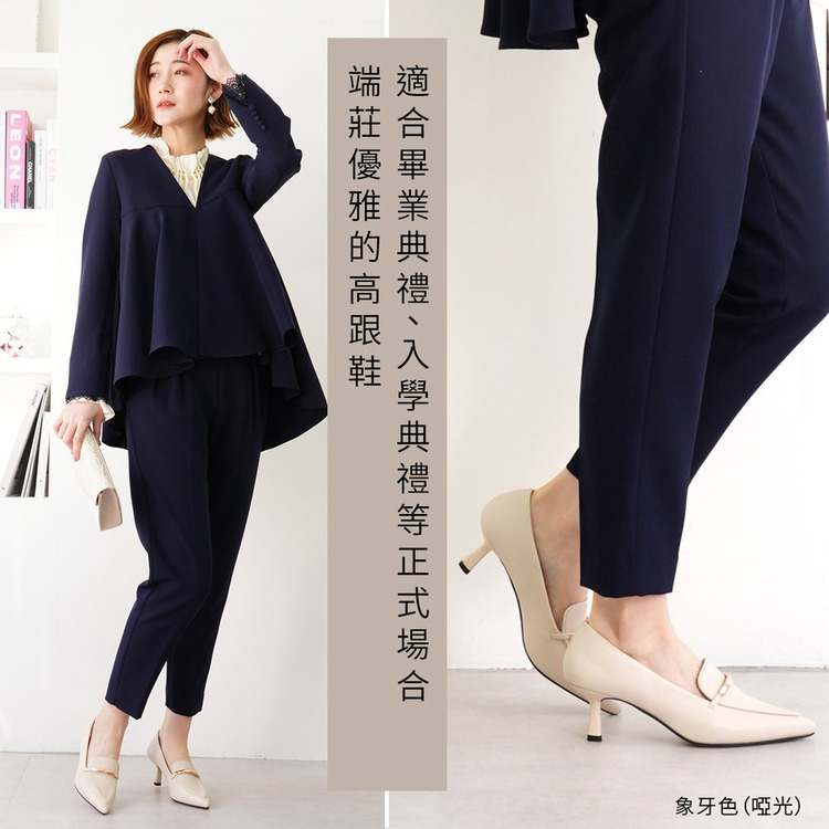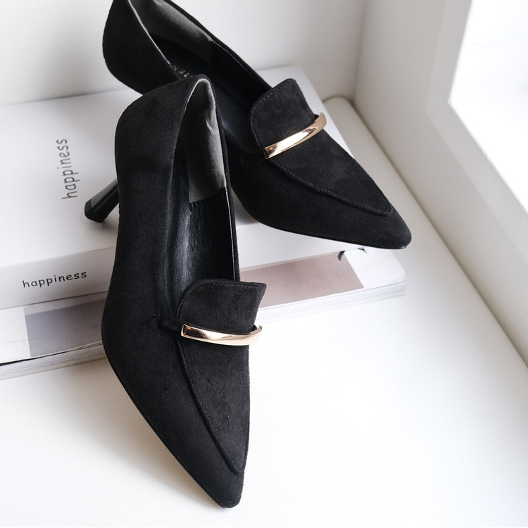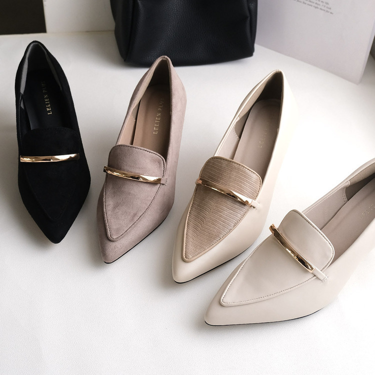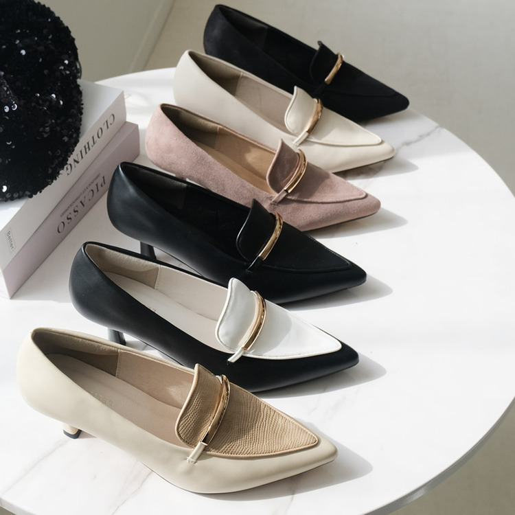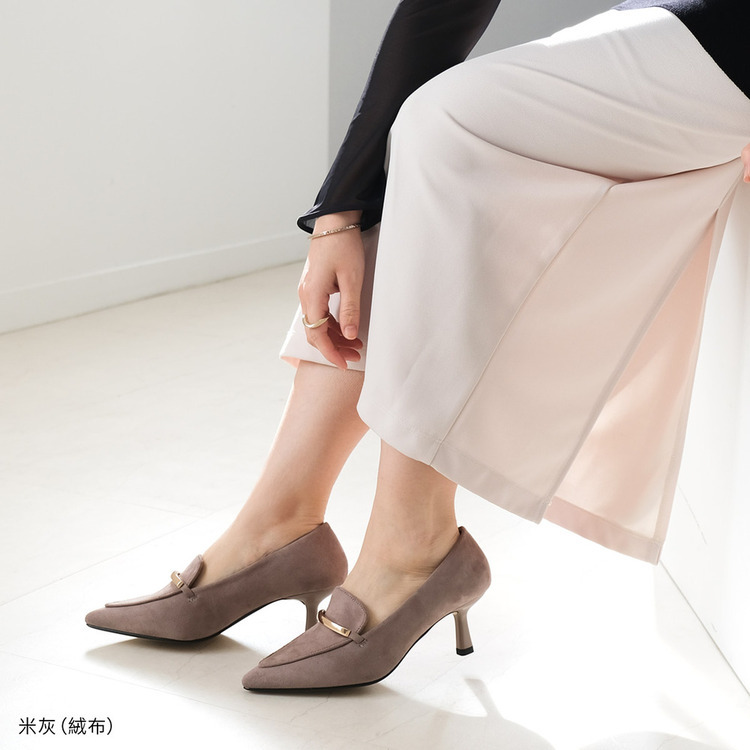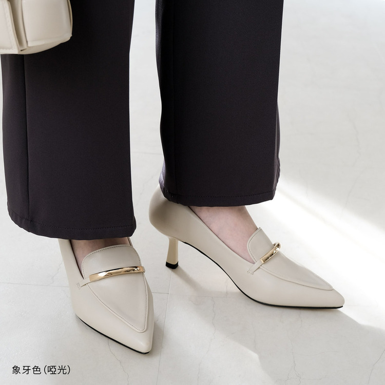 結合尖頭高跟鞋與樂福鞋的設計,金屬線飾點綴鞋面,不僅適合搭配裙子,搭配褲子也同樣好看。