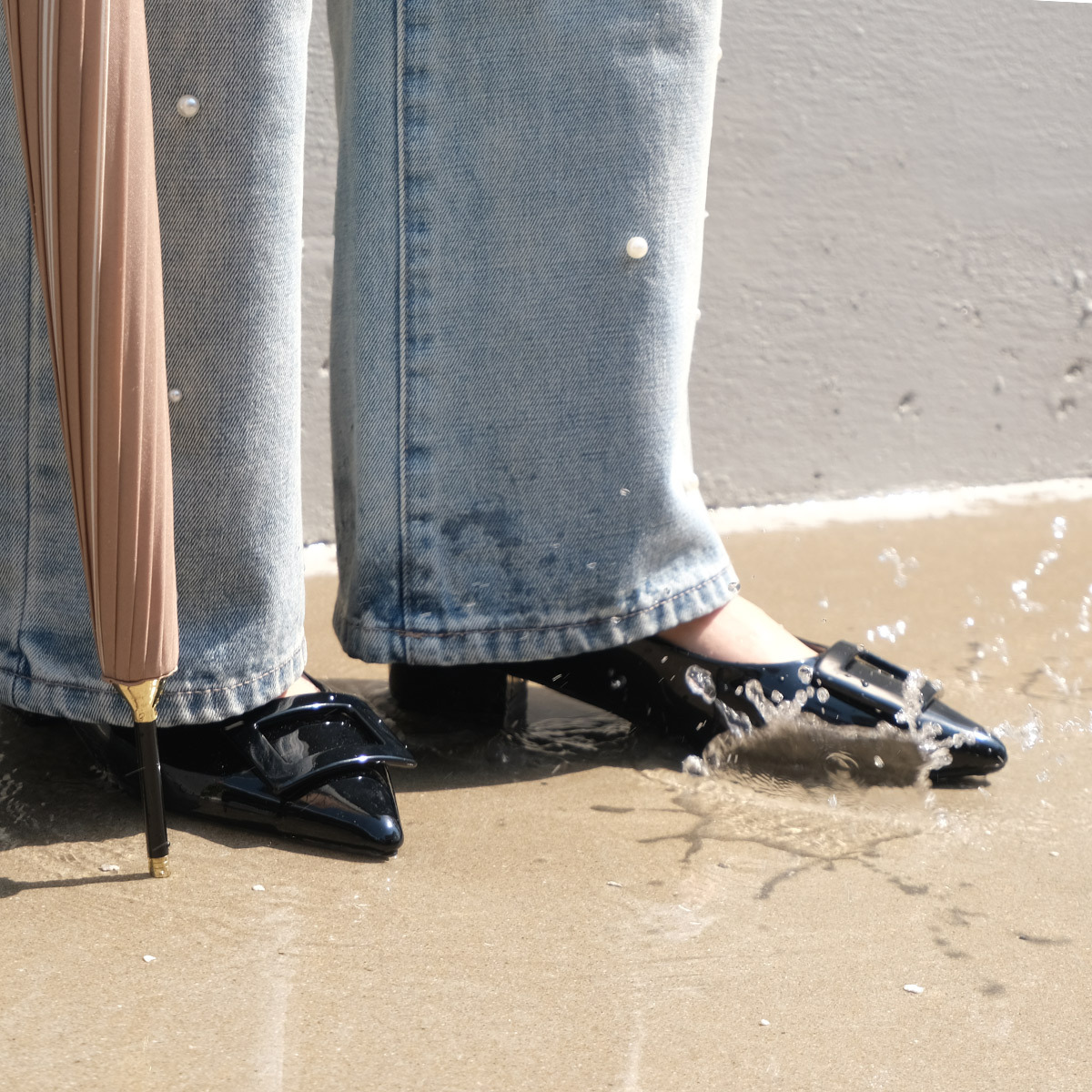 試穿尺寸[34] / 赤腳試穿 きつめぴったりで履けます。 馴染めばちょうどよくなりそうです。