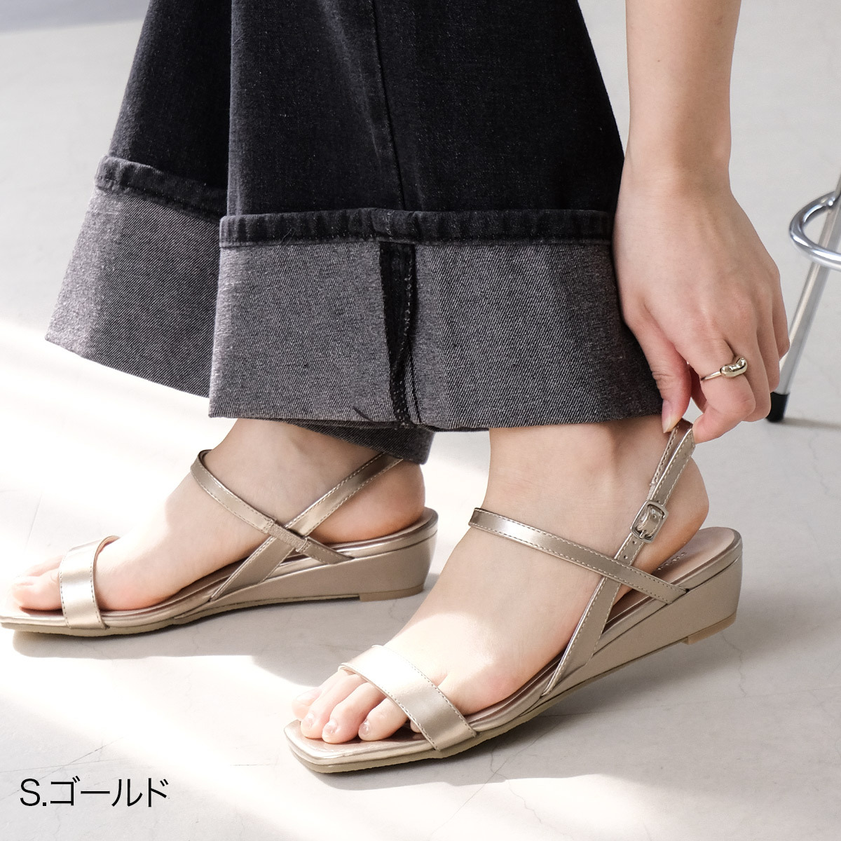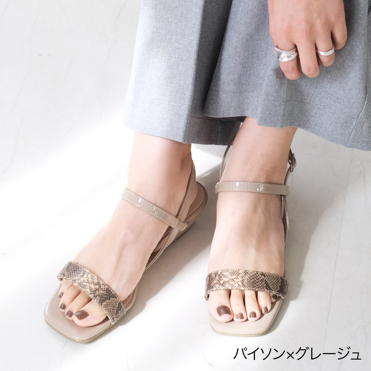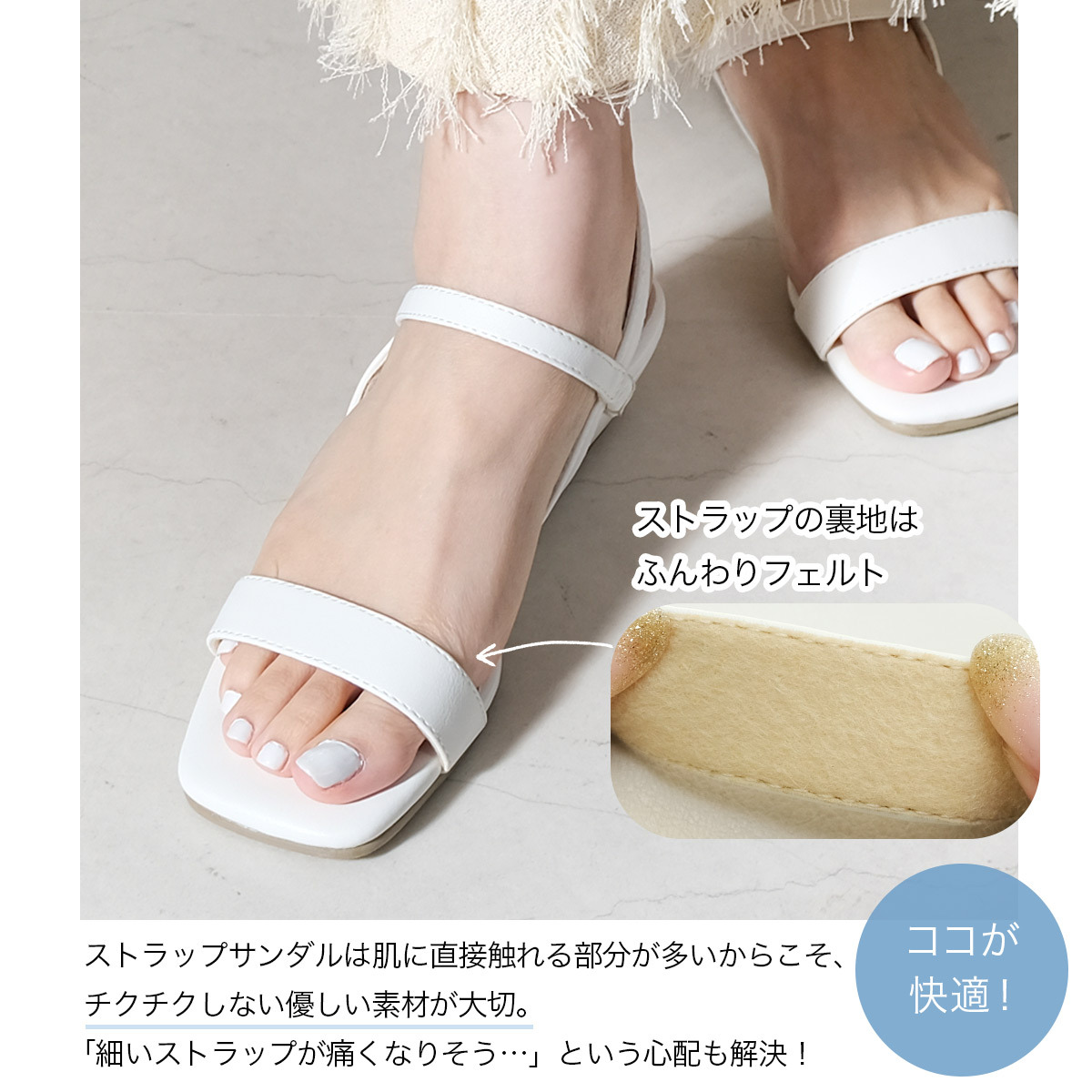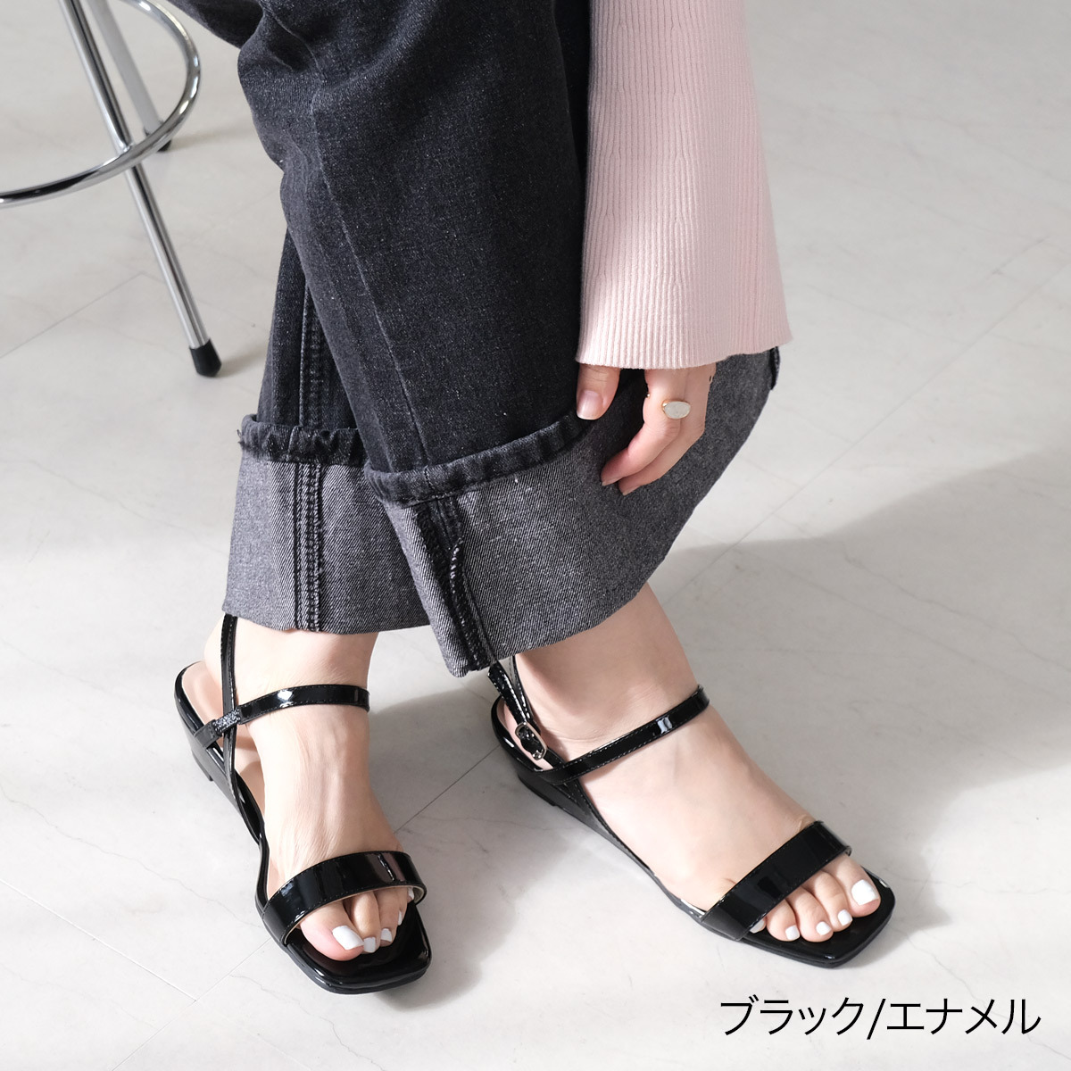 低跟也能穿出成熟氣質的人氣細帶涼鞋。後腳跟帶可調整,穿著更舒適。方頭設計也經過全新改良,更具時尚感。