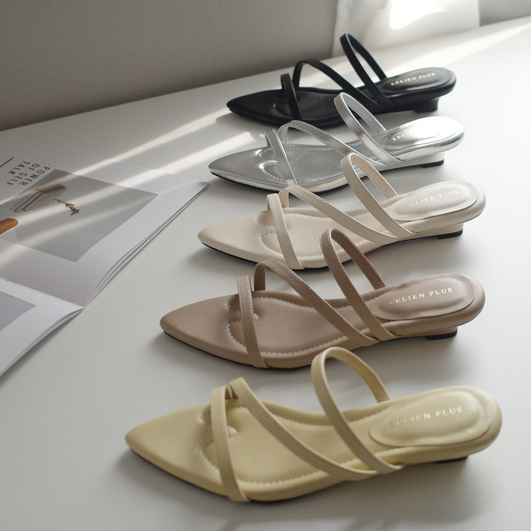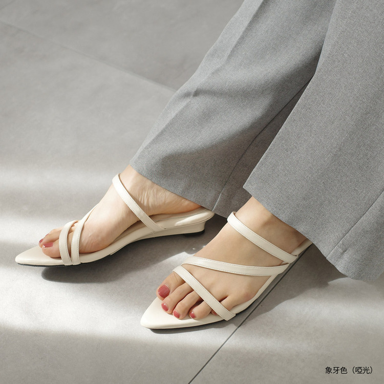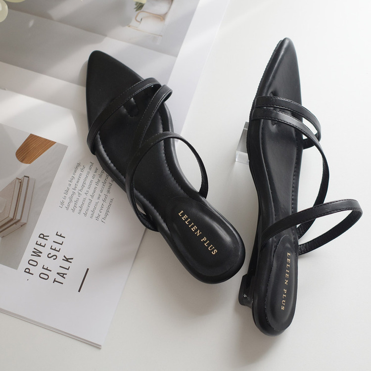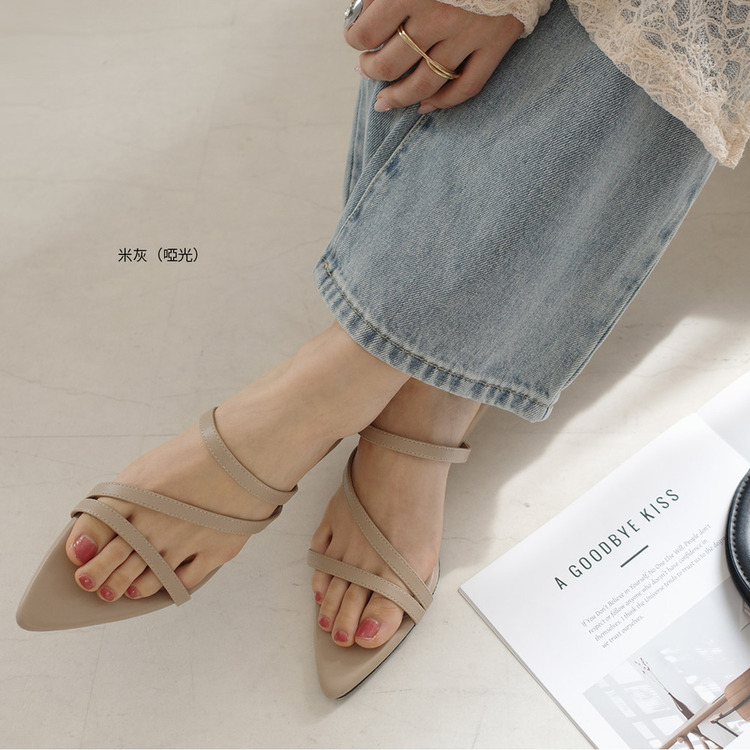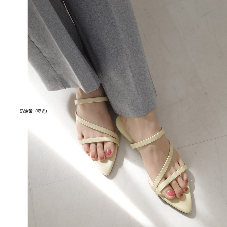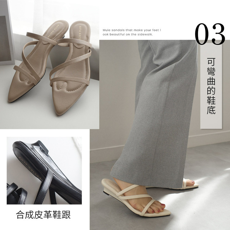 細帶穆勒涼鞋設計,尖頭與低跟的搭配,讓腳看起來修長美麗,增添整體優雅的氛圍。
