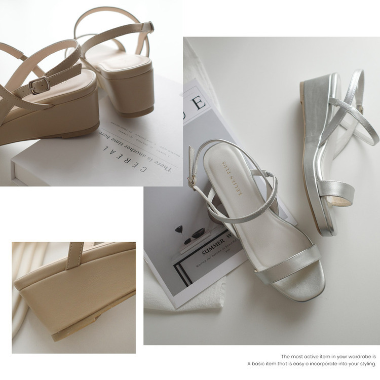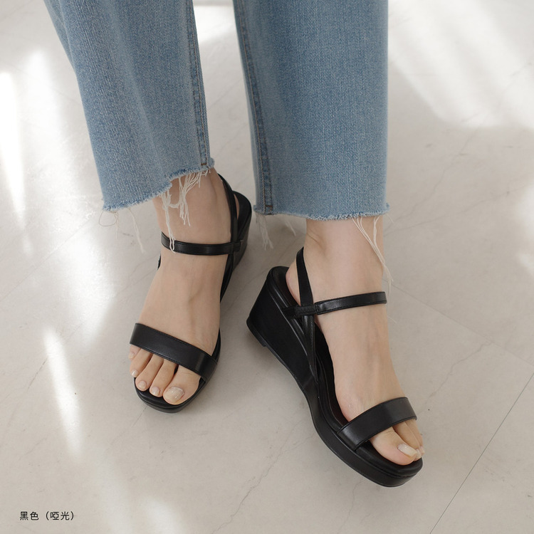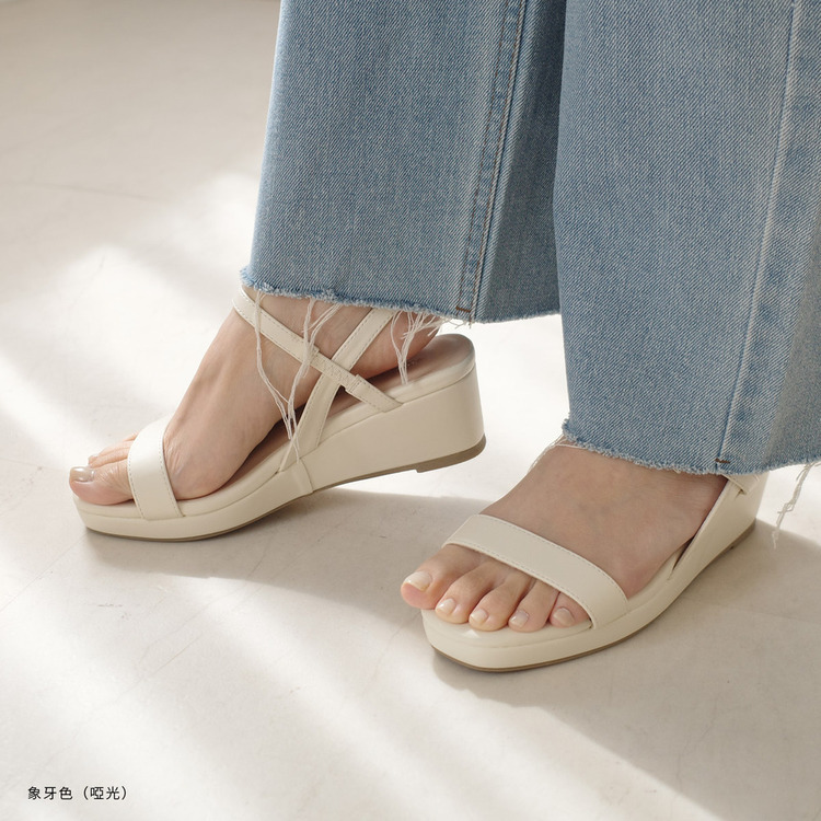 備受歡迎的6公分小坡跟涼鞋,可調節的鞋帶穩穩固定住腳部,方頭設計更顯沉穩低調。