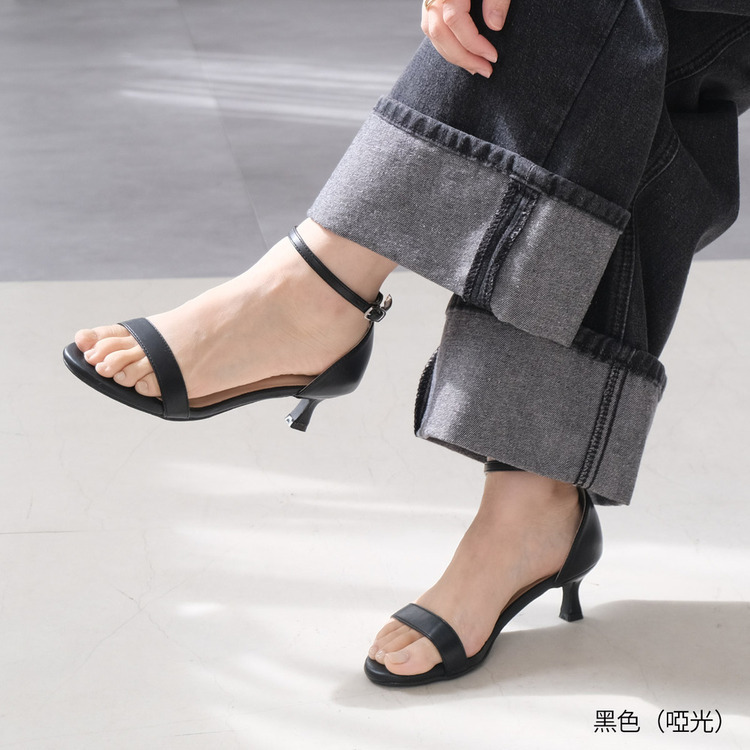 今天流行大勢的踝帶涼鞋,5公分的跟高,拉長腿部線條,展現整體穿搭魅力。