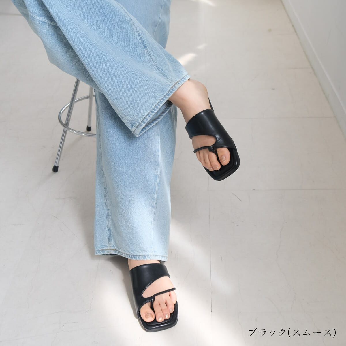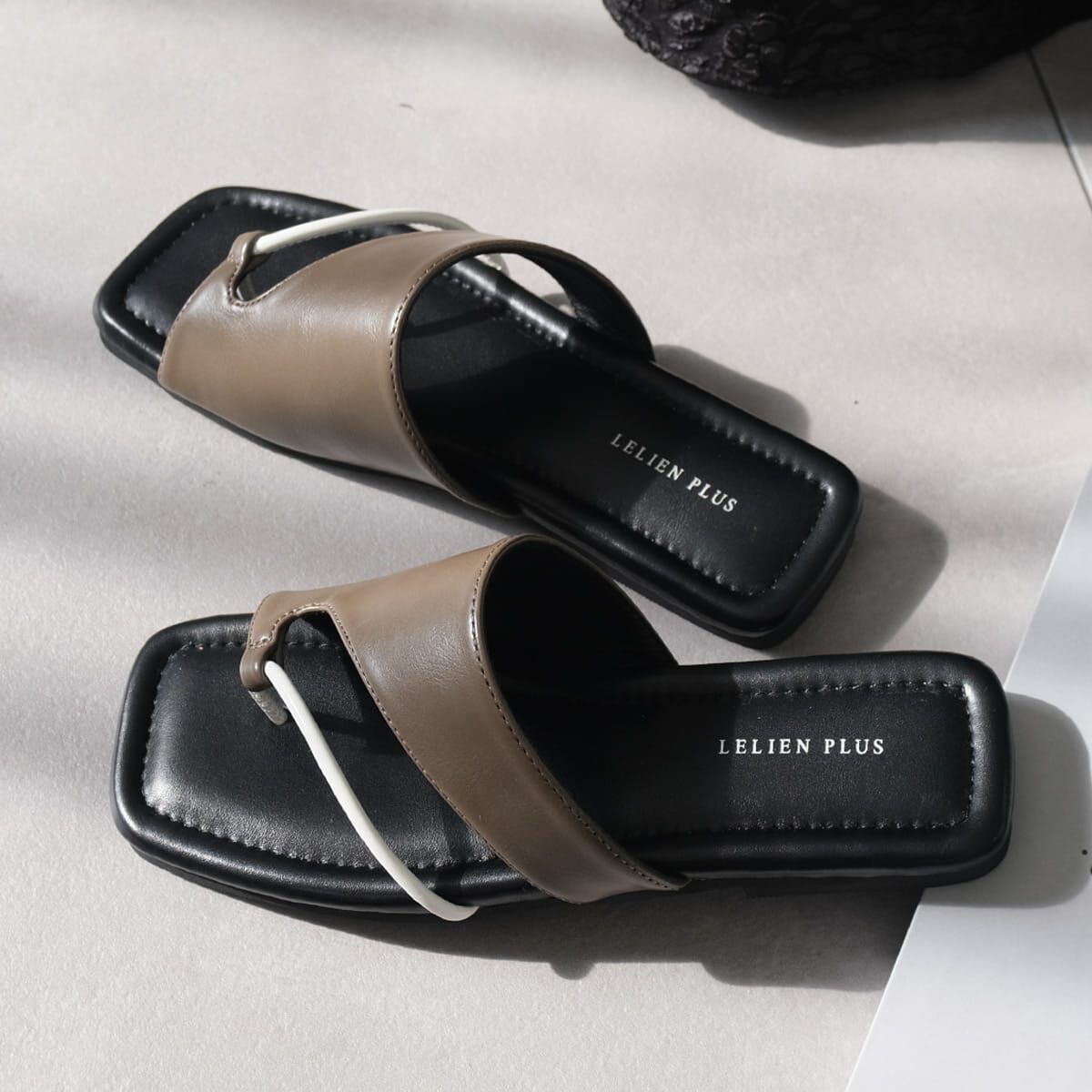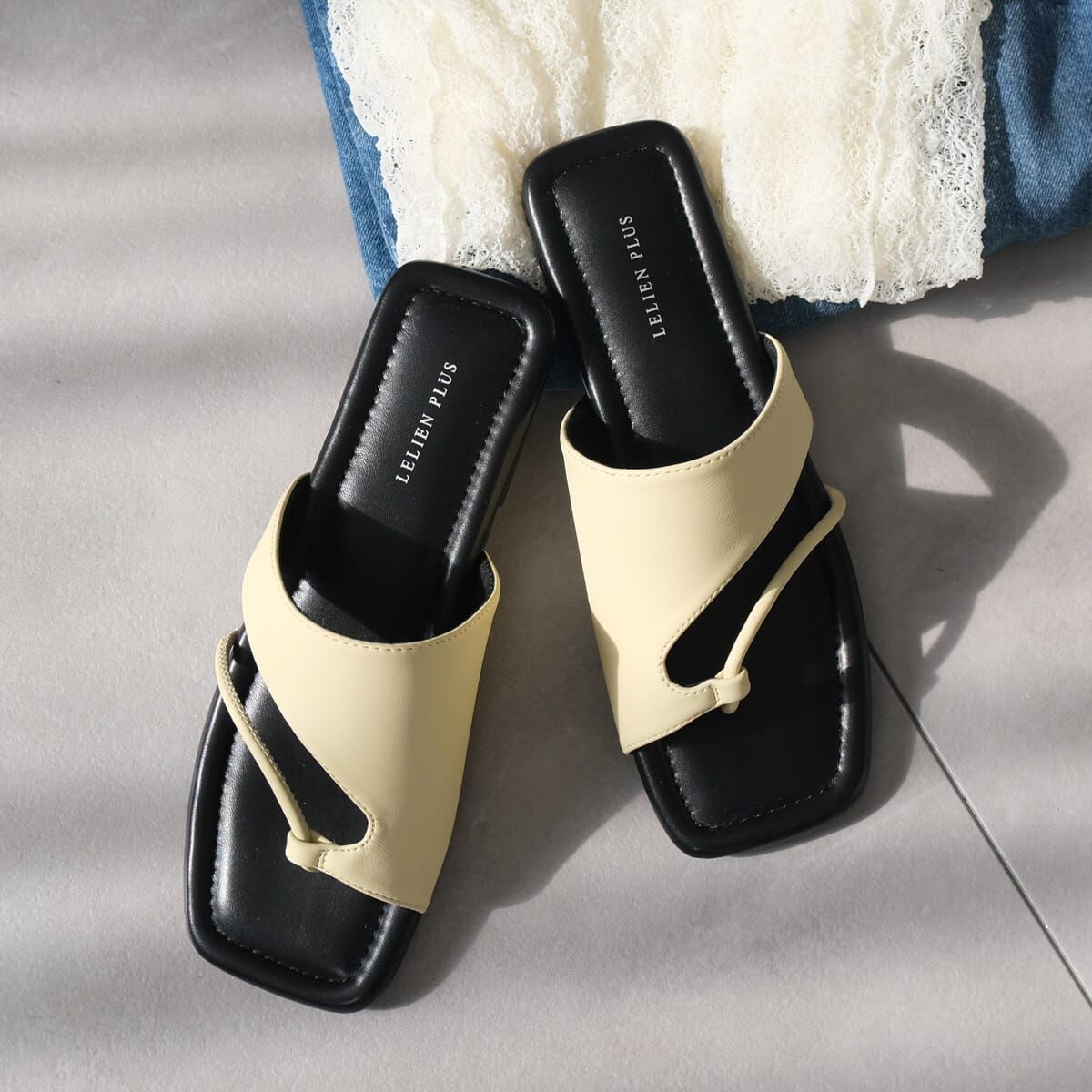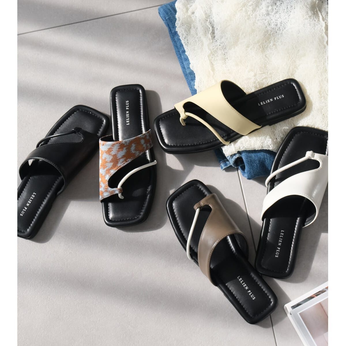 從大拇指延伸到小指的流線型繫帶設計,令人印象深刻的平底涼鞋。