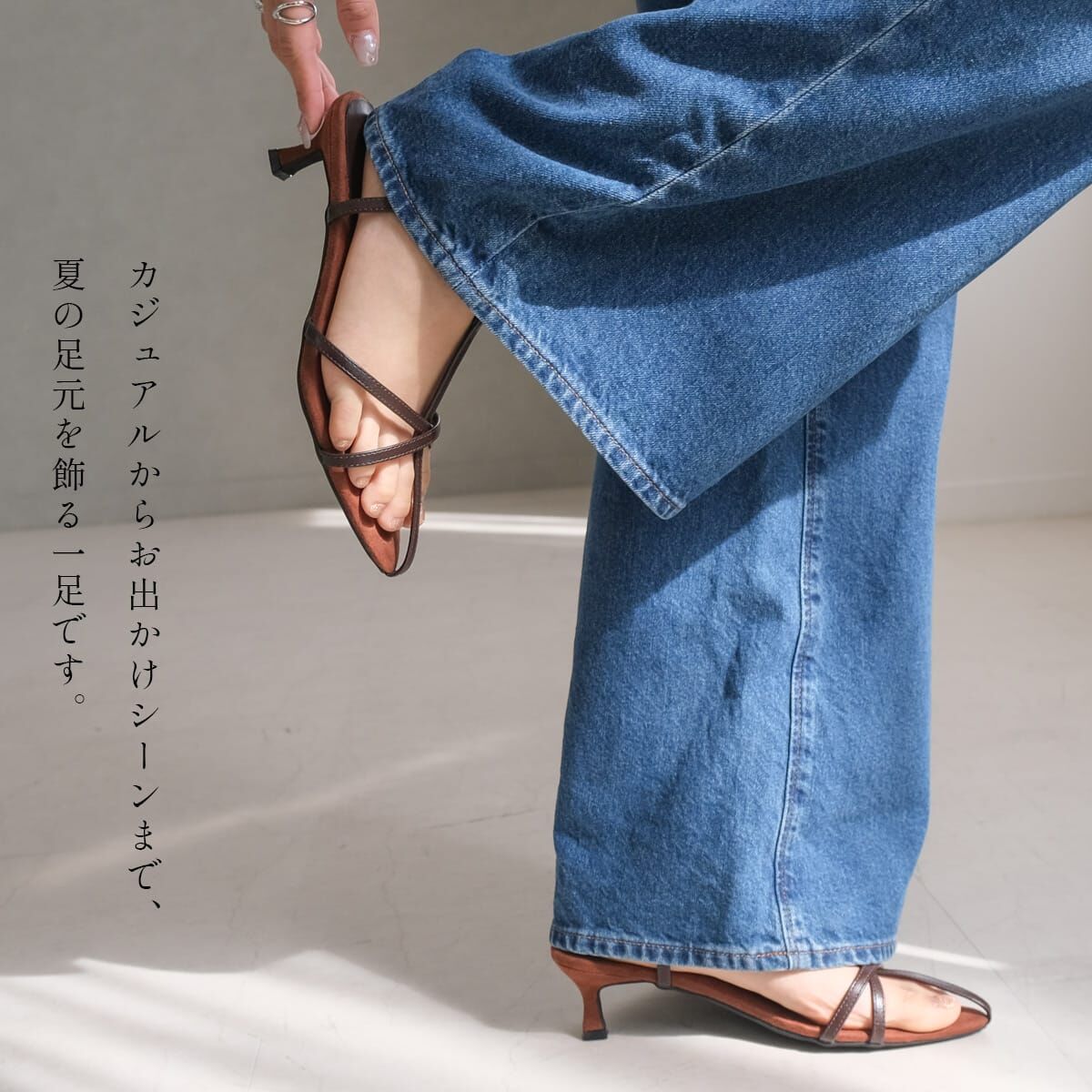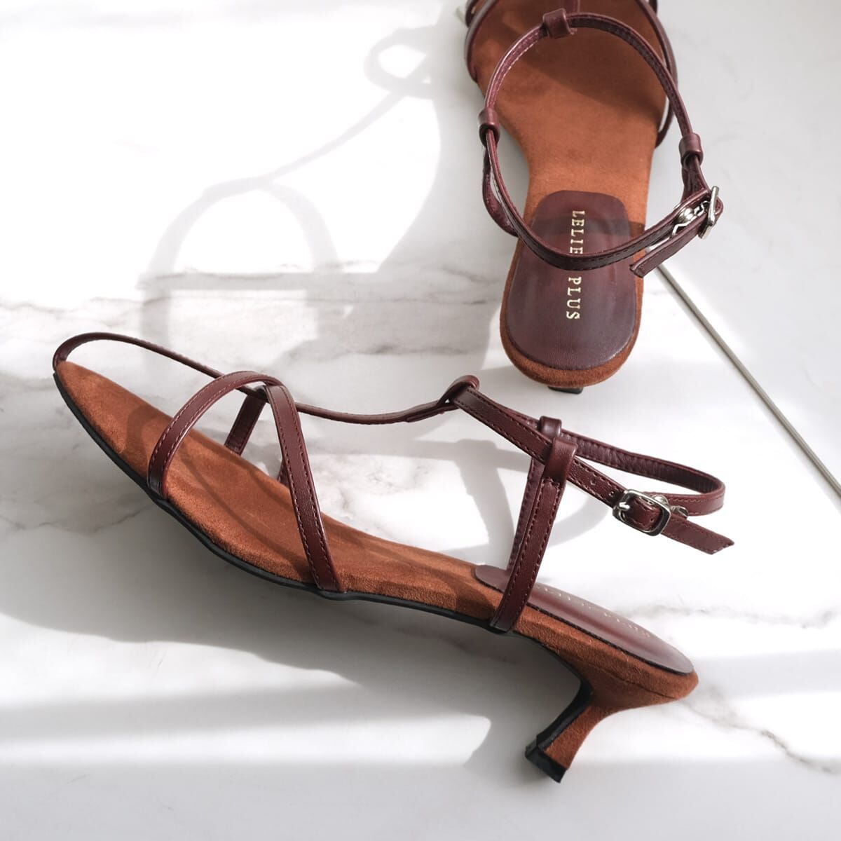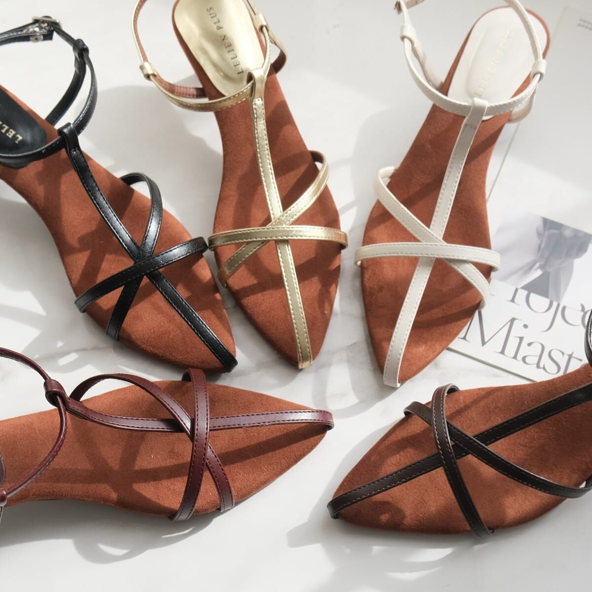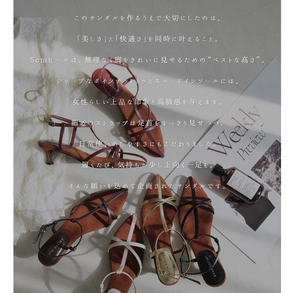 5cm鞋跟搭配縱向線條繫帶,讓雙腿更顯修長優美。