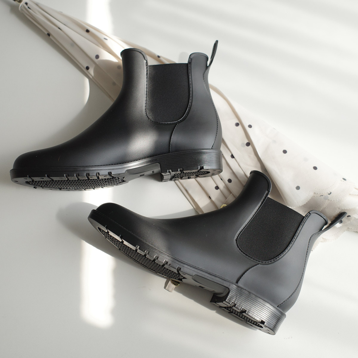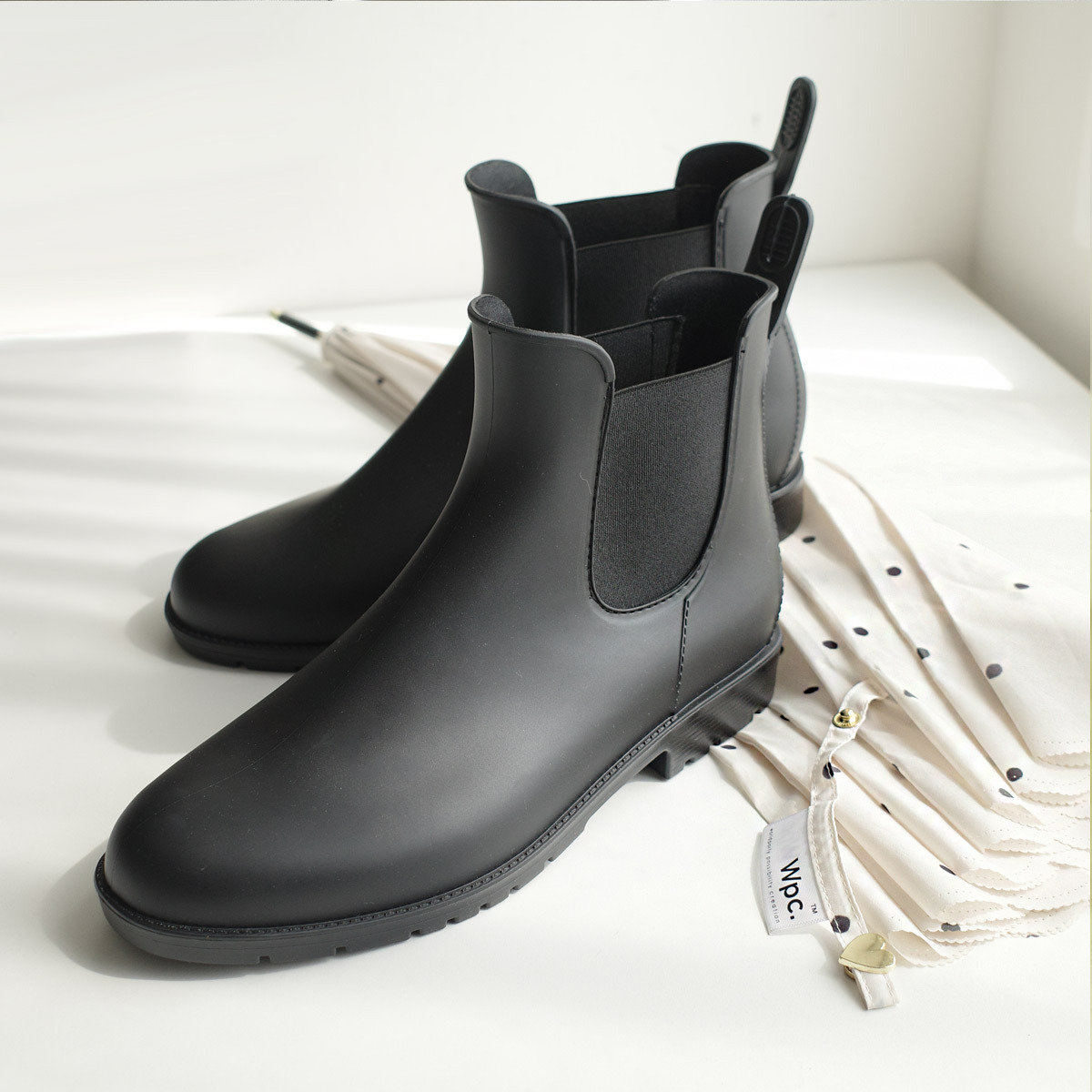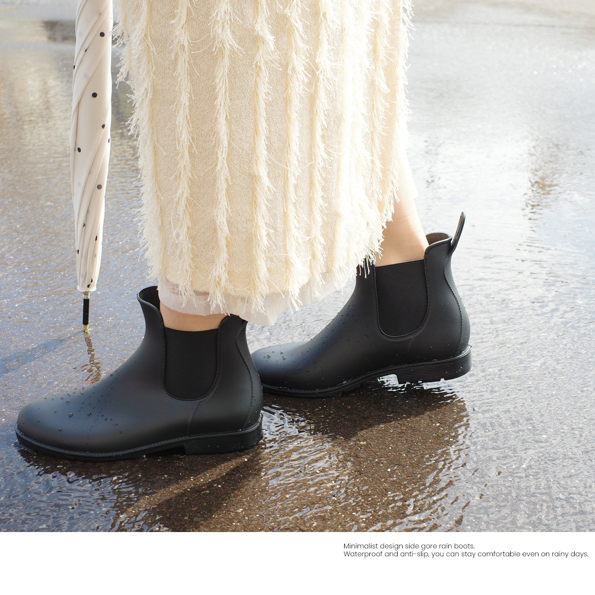 簡約設計的短雨靴,即使雨停了也可以舒適地穿著,並且可以輕鬆搭配各種風格的多功能單品!