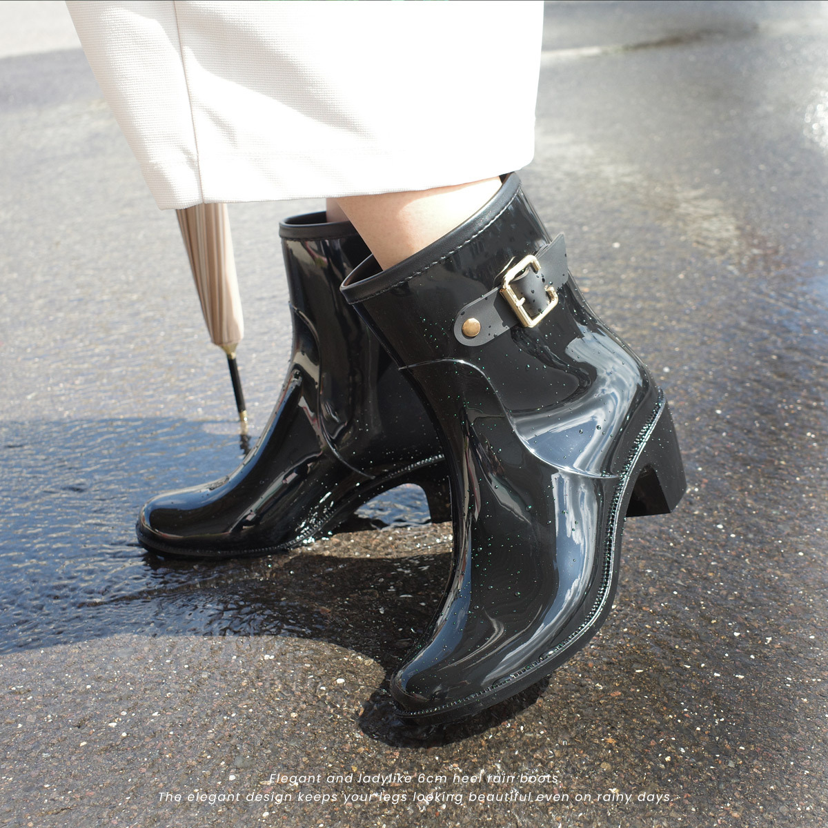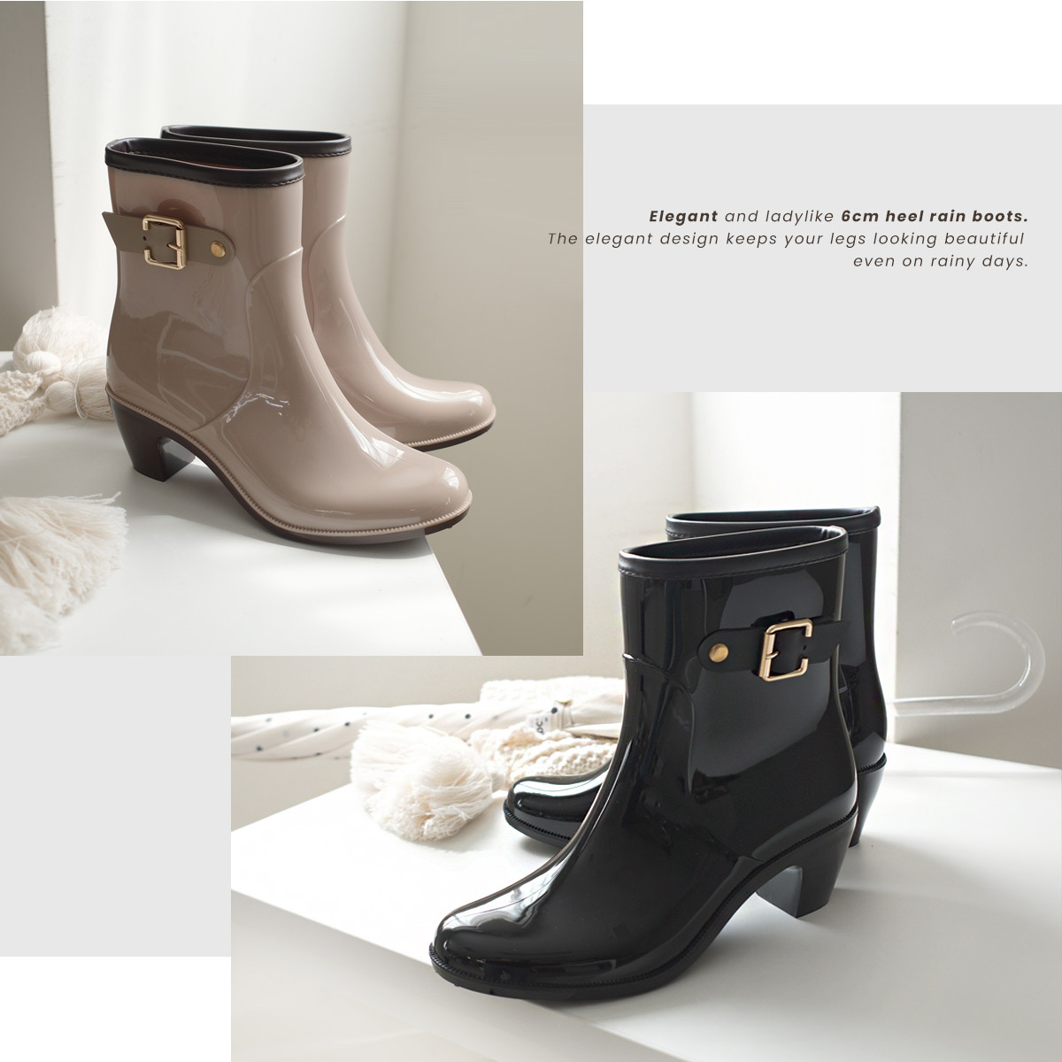 優雅淑女的6公分高跟雨靴,優雅的設計即使在下雨天也能保持美麗。