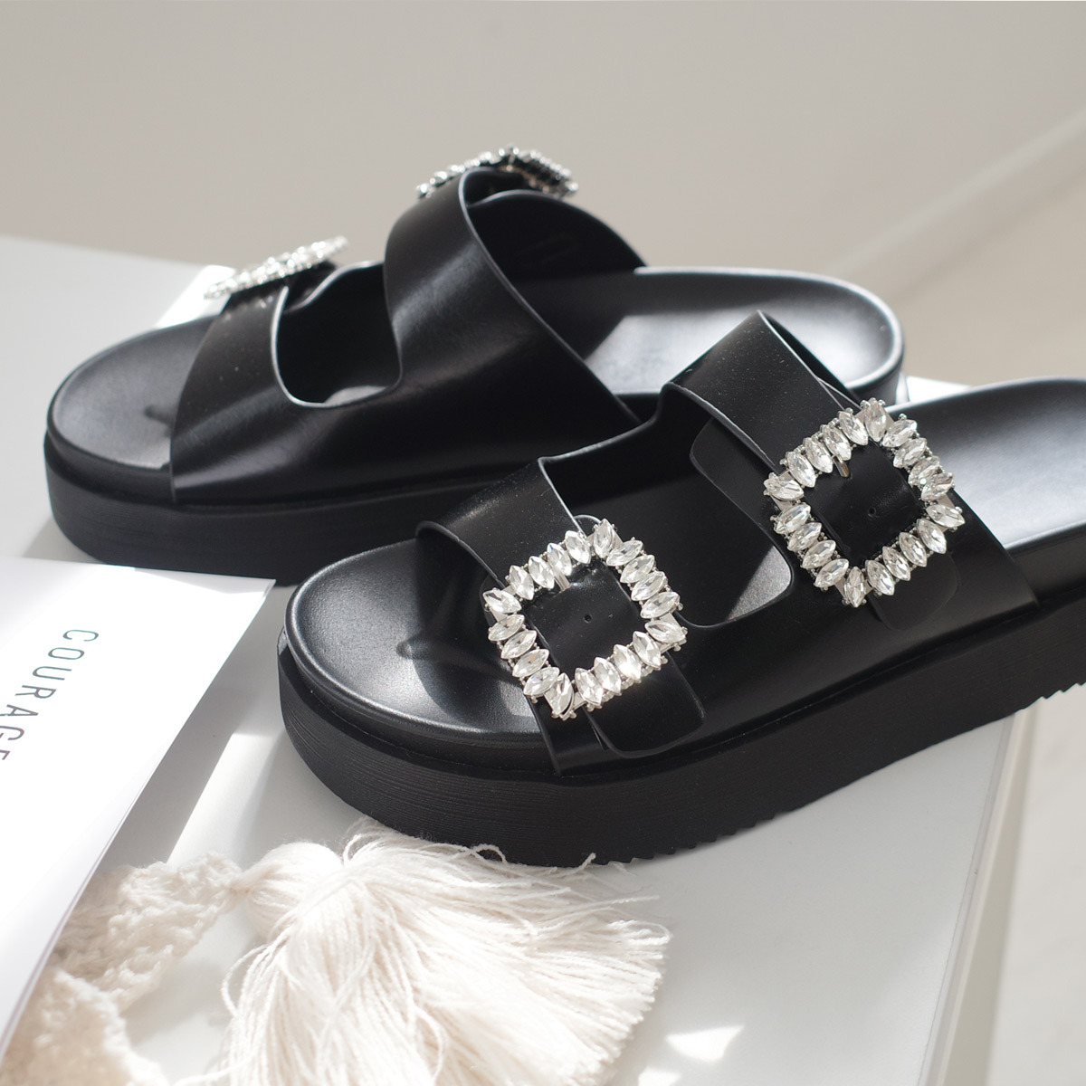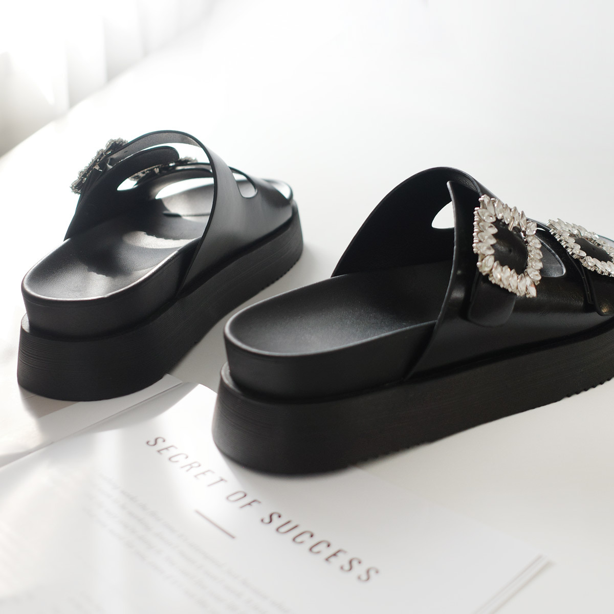 華麗的水鑽設計以及簡約方扣設計,厚底拉長腿部比例,休閒又不隨便的風格!