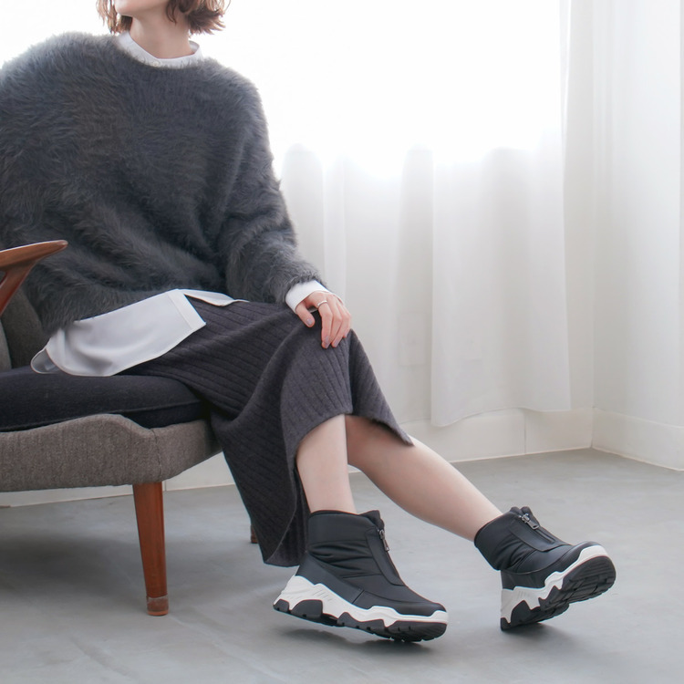 戶外運動風冬季靴子,鞋底為運動鞋底,拉鏈設計穿脫好方便。