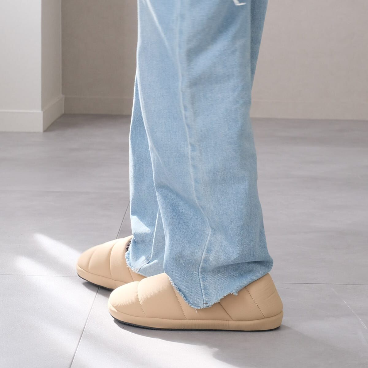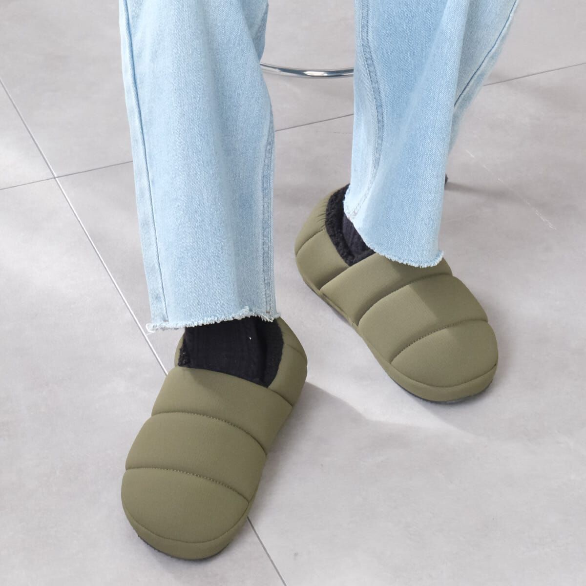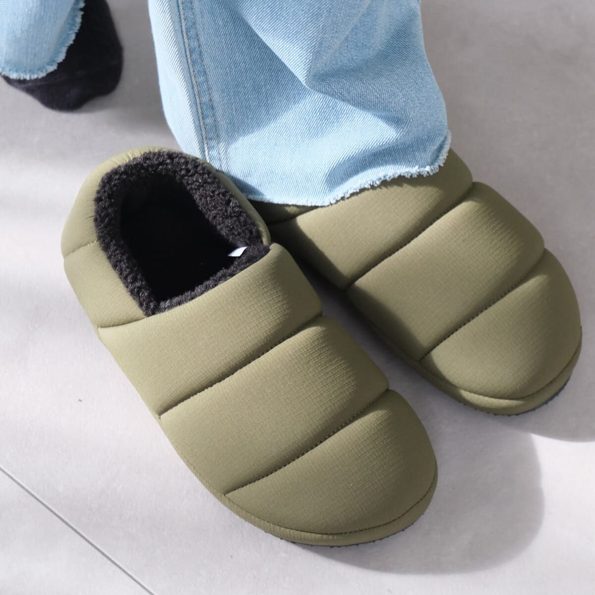 輕盈又保暖,可兩種方式穿著的厚底羽絨保暖鞋。