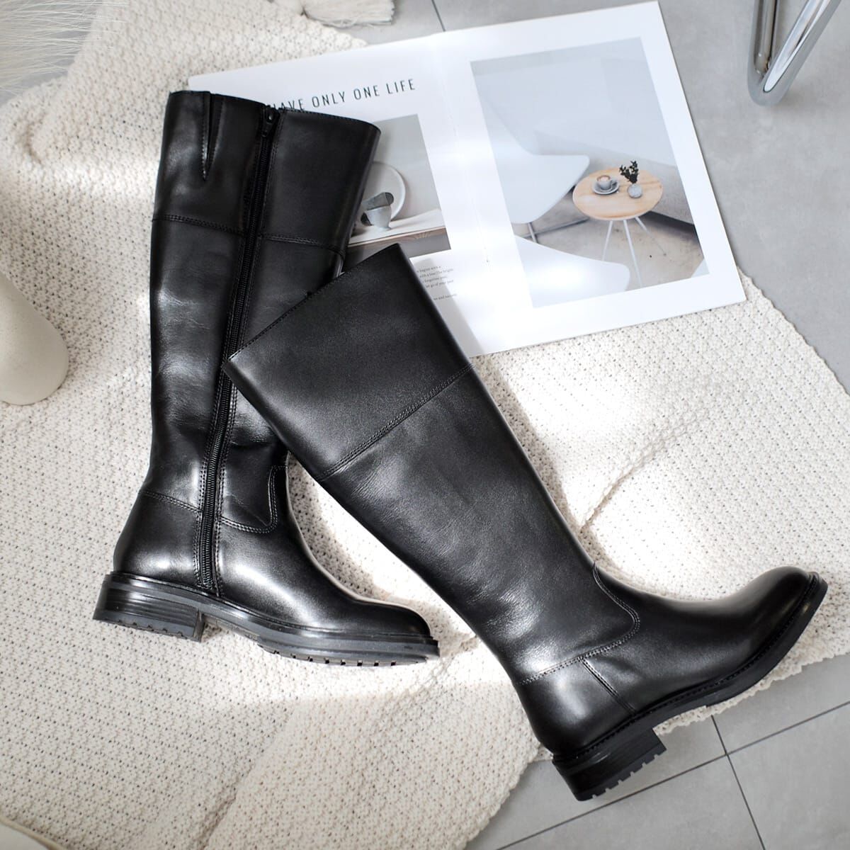 簡約設計,搭配各種穿搭都合適的真皮長靴。