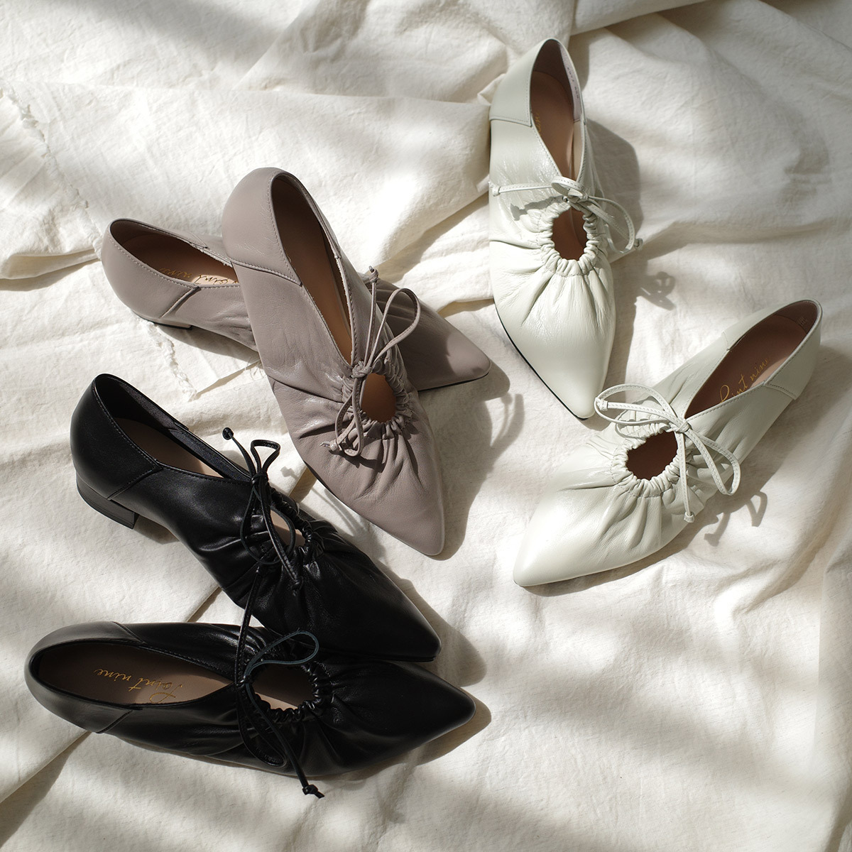 尖頭蝴蝶結芭蕾舞鞋,適合各個年齡層,美麗的自然褶皺設計,抗菌除臭,穿起來舒適好走。