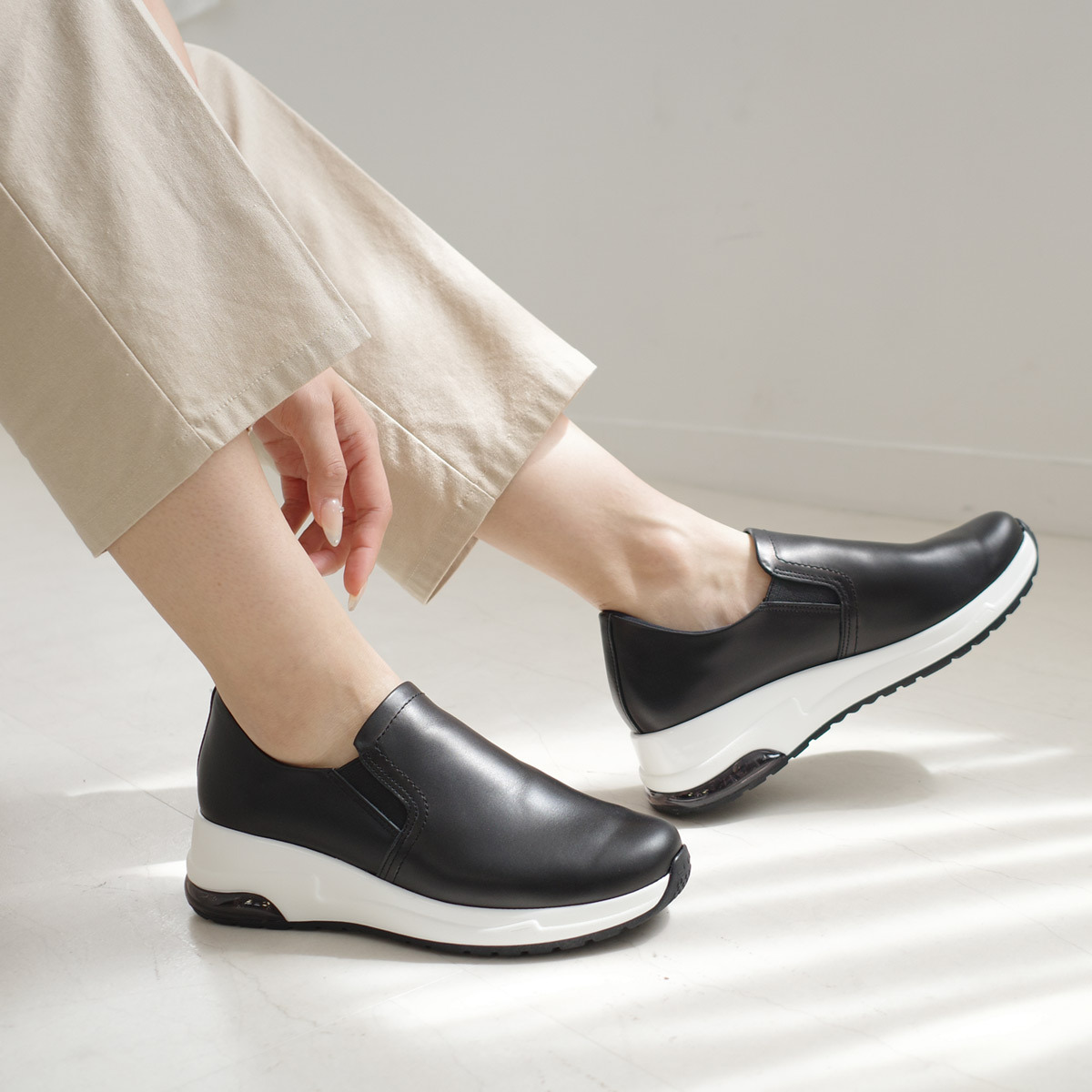 試穿尺寸[22.5cm] / 加襪試穿 歩くとたまにかかとが抜けますが許容範囲です。 |