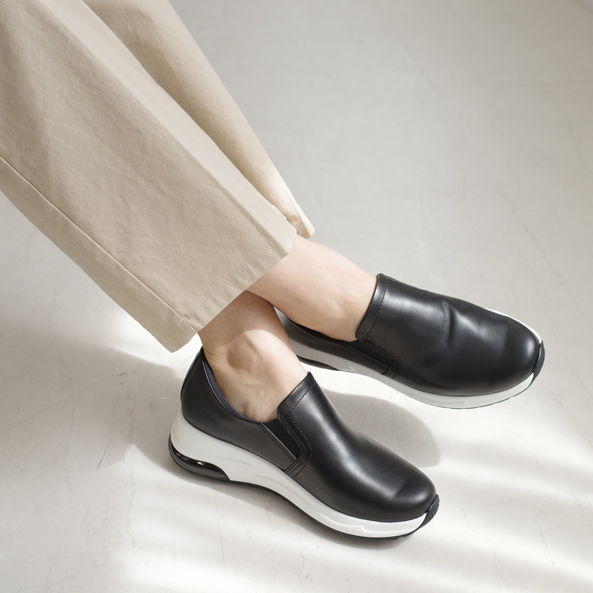 採用優質真皮製成的運動懶人鞋,注重舒適性!杯形鞋墊和海綿內裡帶來柔軟舒適的穿著體驗。