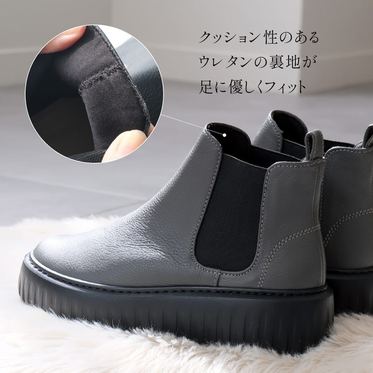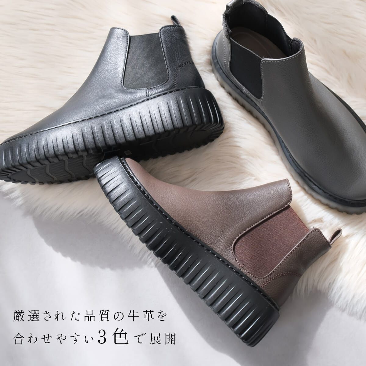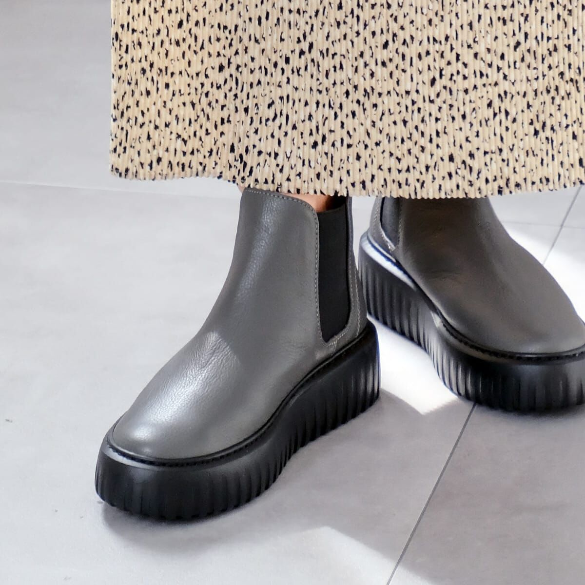 將經典側鬆設計與流行厚底結合的短靴,造型俐落百搭。