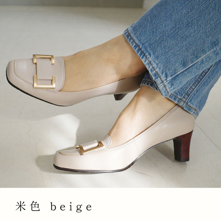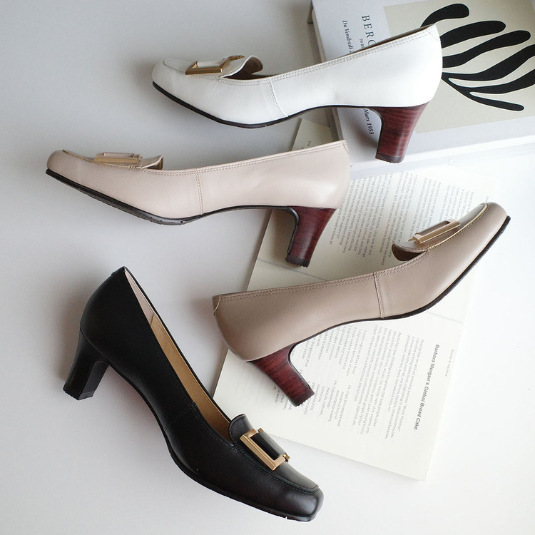 真皮方頭高跟鞋,跟高5.5cm,讓腿部線條更修長。鞋墊有抗菌除臭的功能,穿起來舒適安心。