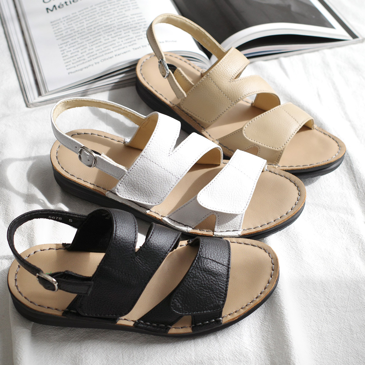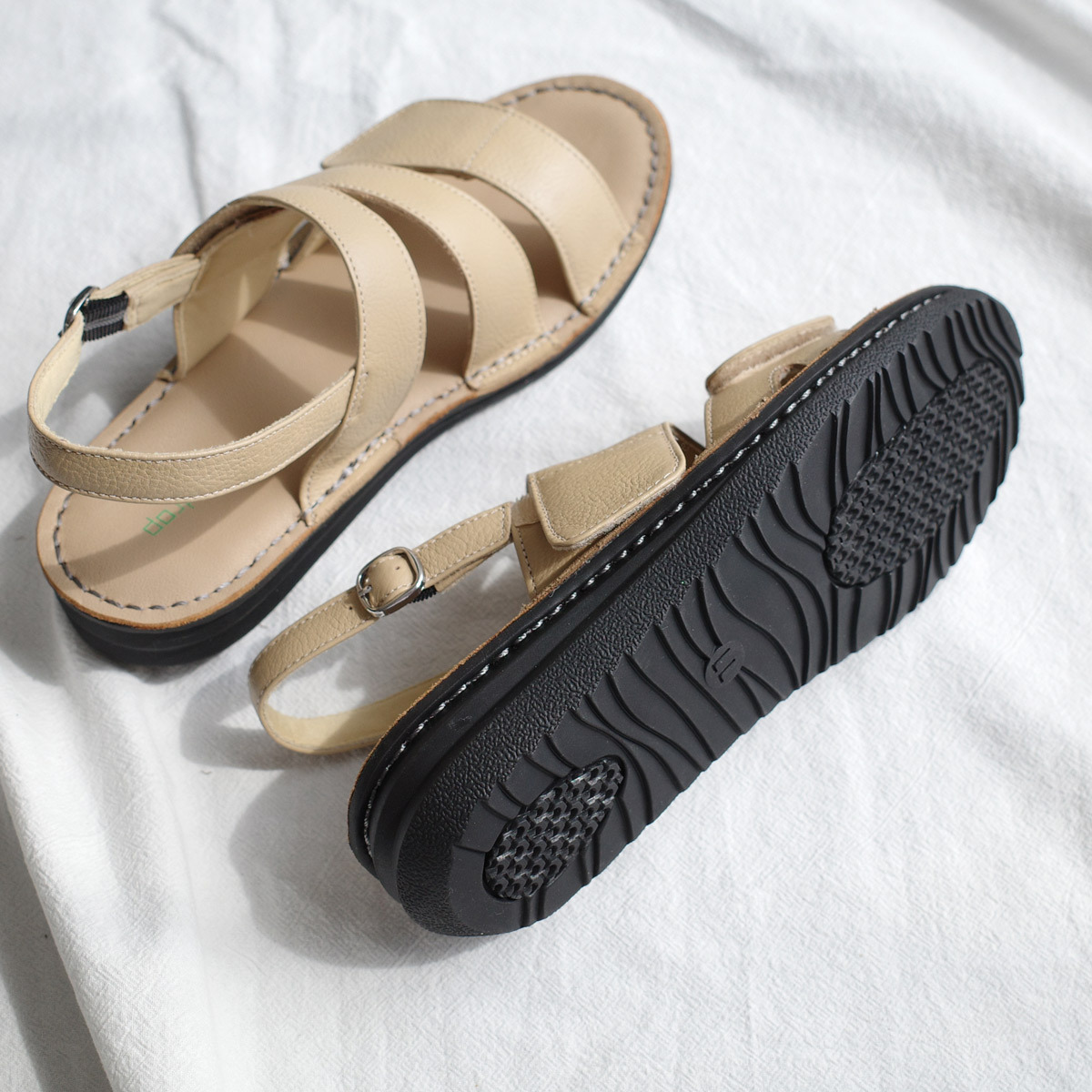 試穿尺寸[M] / 赤腳試穿 ≪我選這個尺寸!≫ ジャスト尺寸です。マジックテープで幅を調整するとちょうどよく履けます。 試穿尺寸[L] / 赤腳試穿 全体的に大きめです。 |