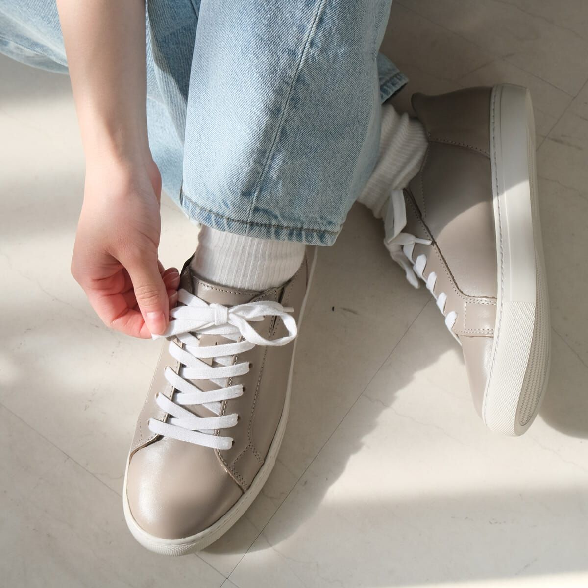 試穿尺寸[22.5cm] / 加襪試穿 ちょうどぴったりで履けますが、もう少しゆとりがあってもいい感じがします。 試穿尺寸[23.0cm] / 加襪試穿 ≪我選這個尺寸!≫ 程よくゆとりが出ました。靴紐で調節できるのでゆったり履けるこちらの尺寸を選びます。 |