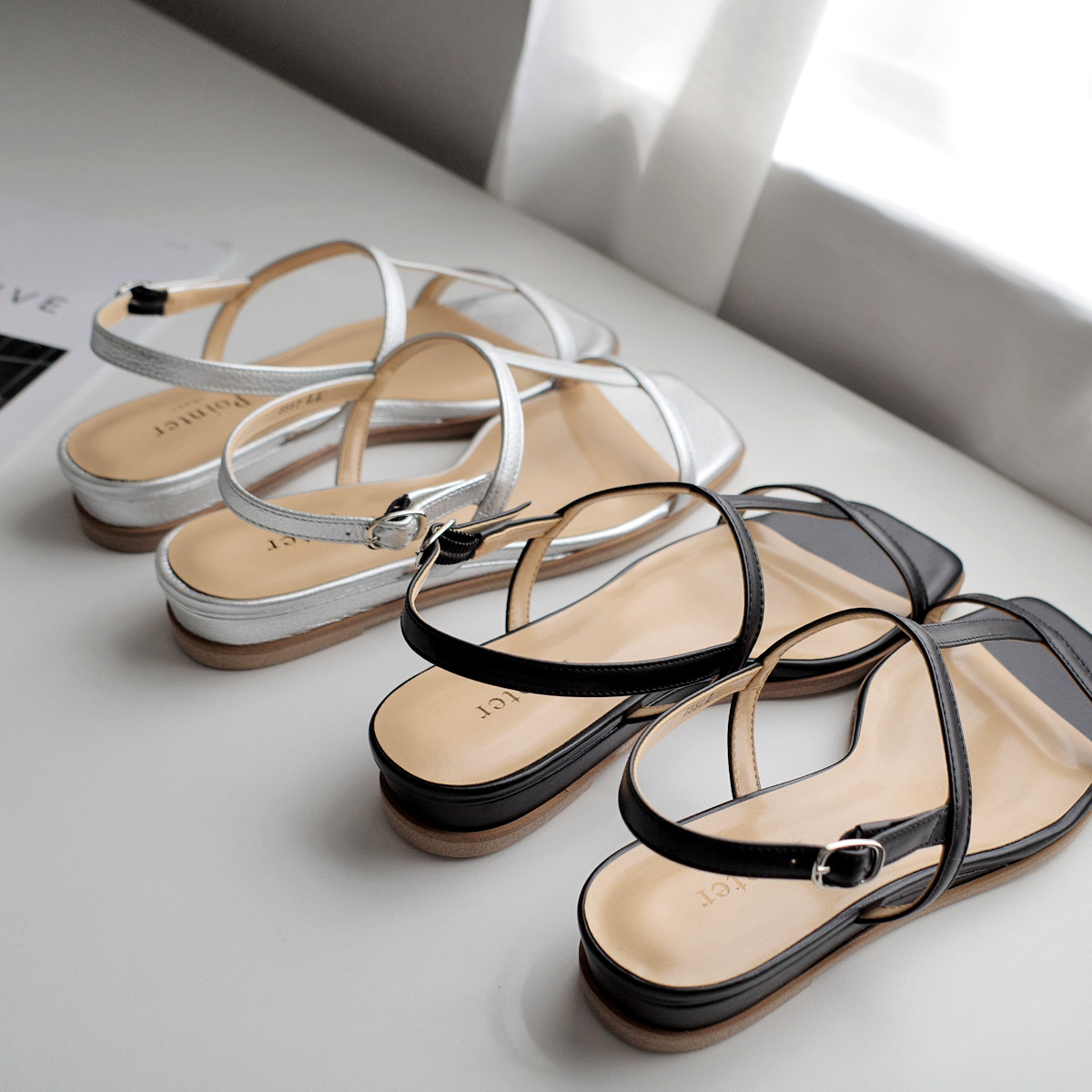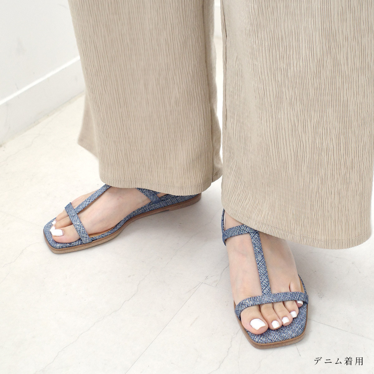 試穿尺寸[S] / 赤腳試穿 足入れできますが、少し小さめで前ストラップもきつめです。 サンダルなので履けないこともない尺寸感です。