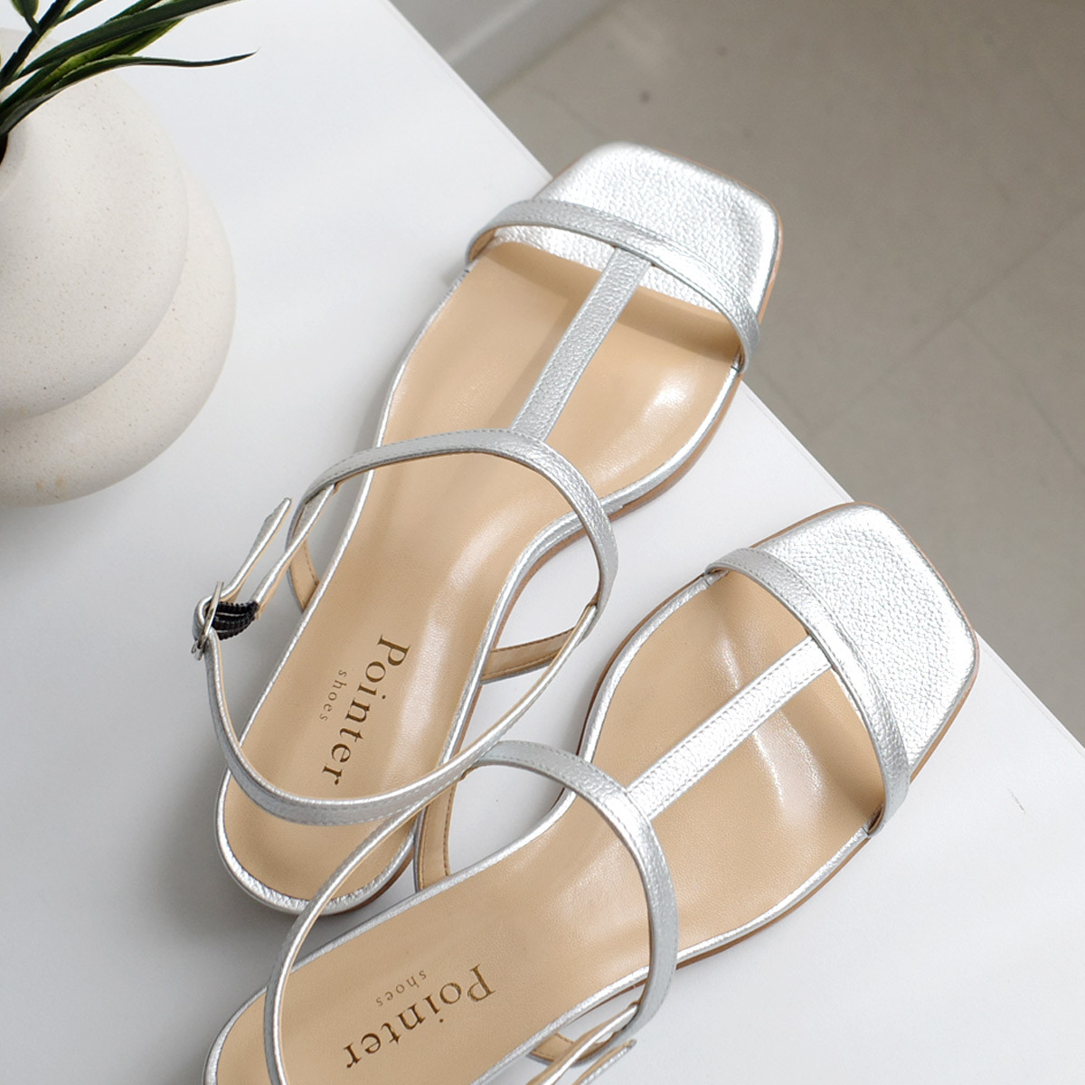 中間的繫帶設計是這款真皮涼鞋的亮點,讓雙腳線條更加優美。搭配迷你楔形跟與包覆式後跟設計的外底,實現舒適好走與時尚感兼具。