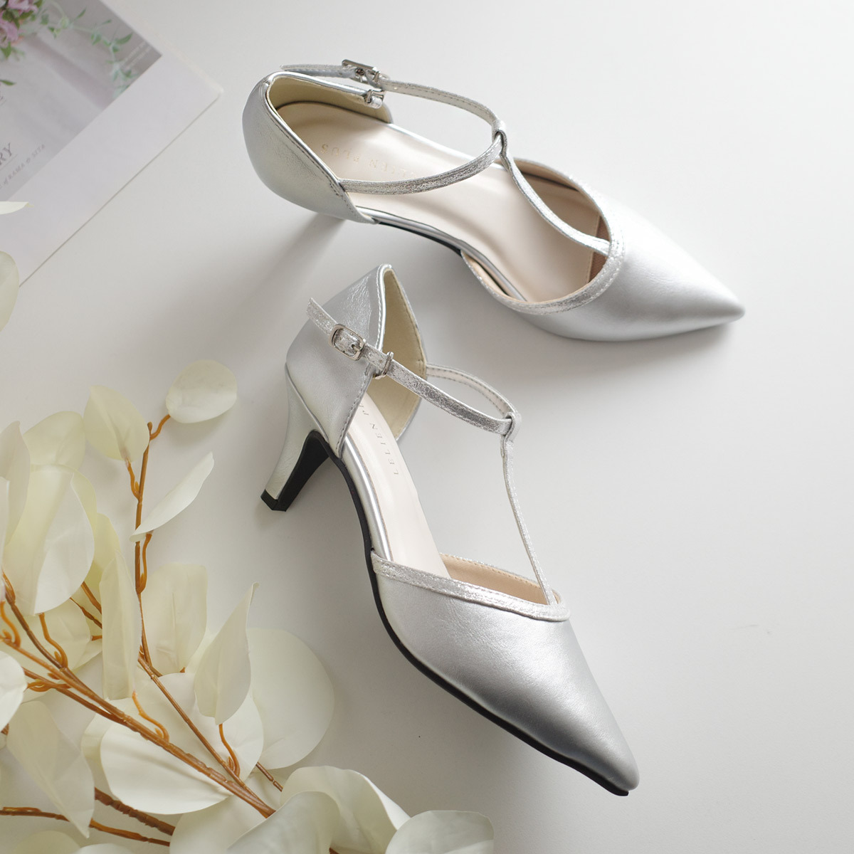 適合參加婚宴、派對、尾牙的時候穿著。6.5公分的細高跟,搭配尖頭設計,閃亮的金屬色澤,增加穿搭的優雅。