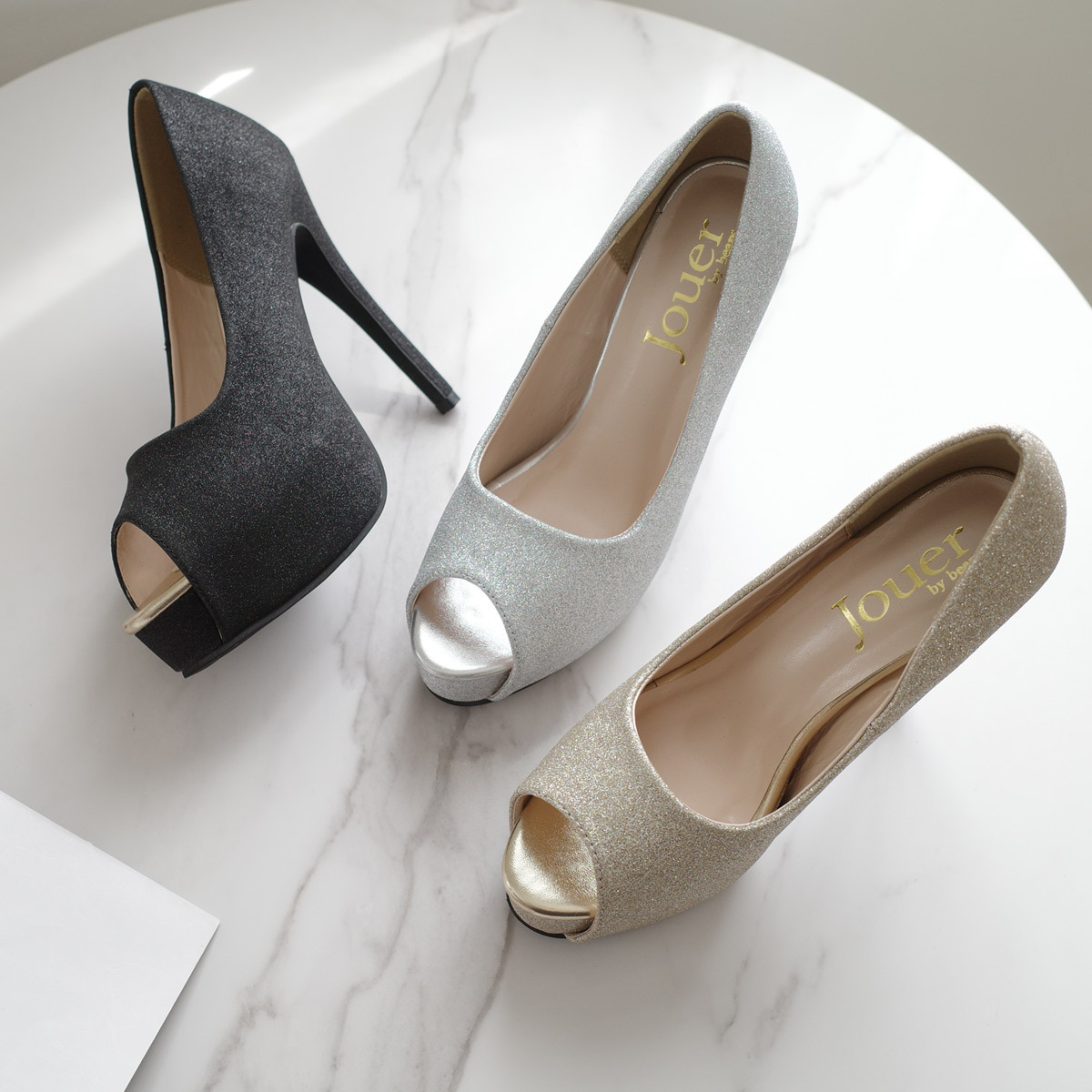 魚口設計配有華麗蕾絲,相當引人注目。細高跟和厚底的設計,從任何角度都能展現腿部線條。