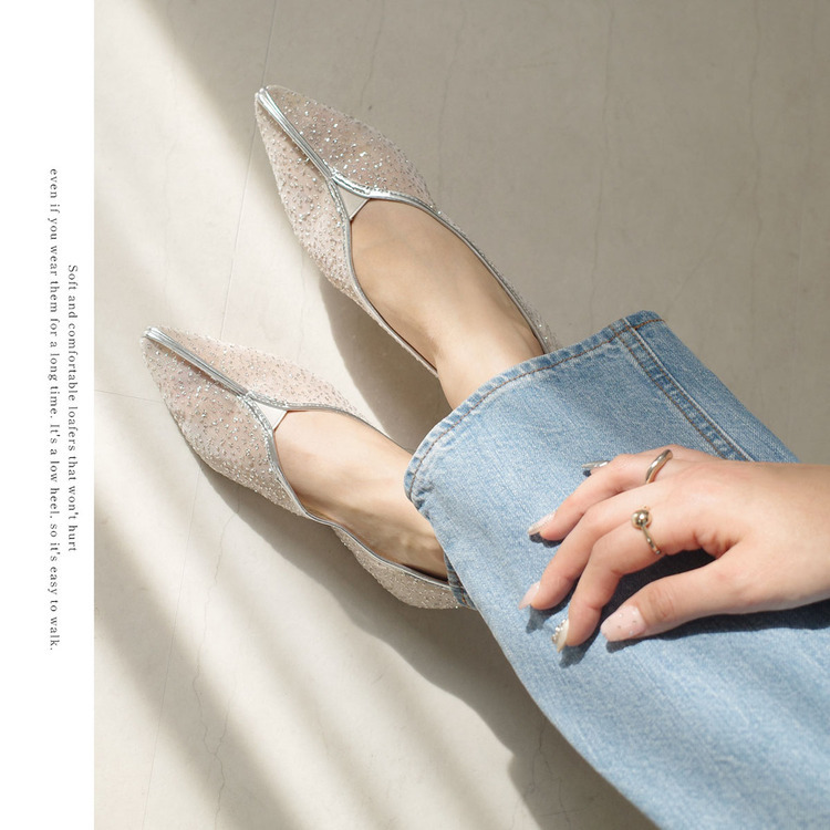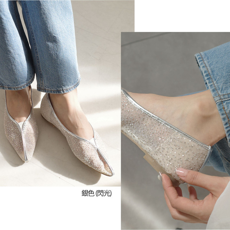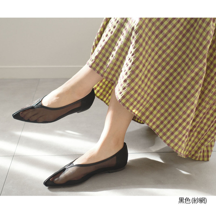 柔軟透明的薄紗鞋面,中縫線設計,簡潔大方。