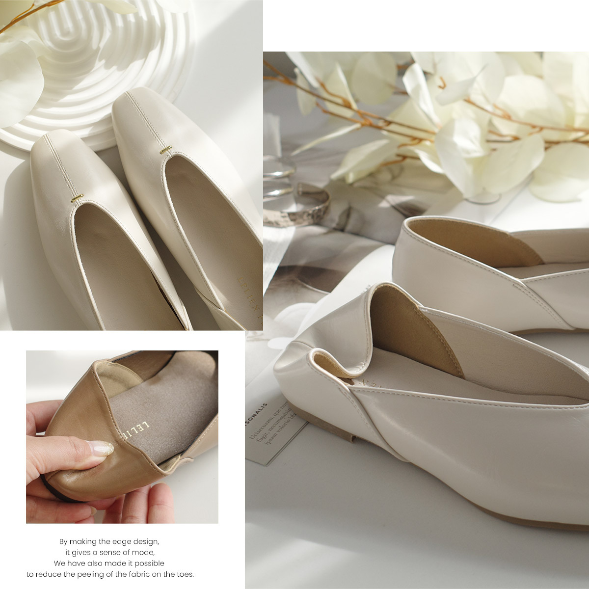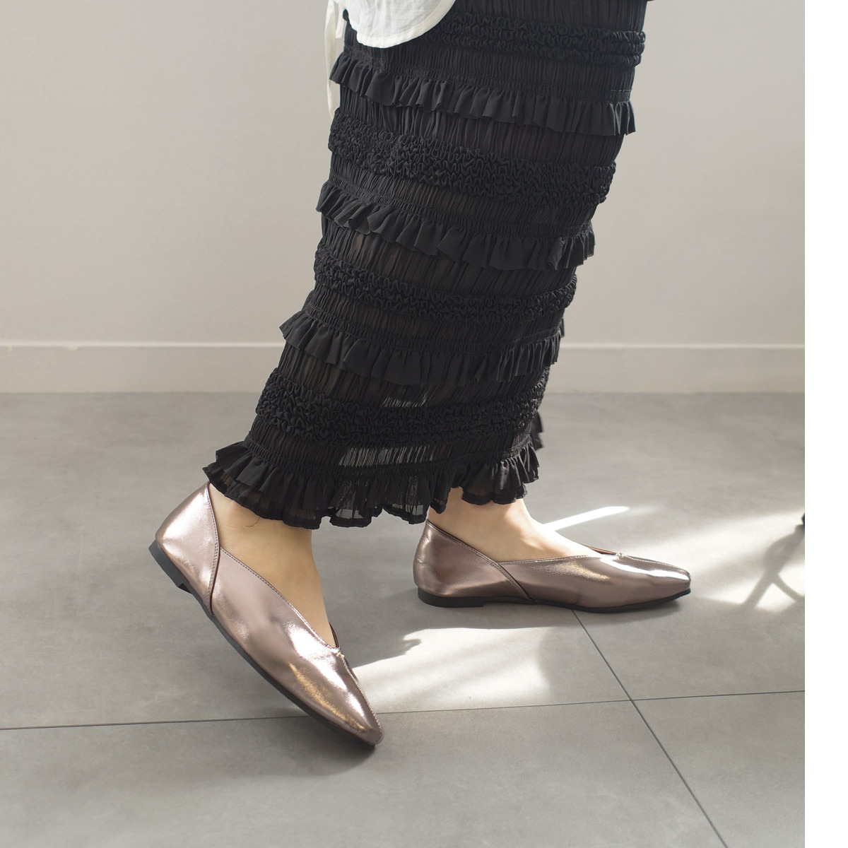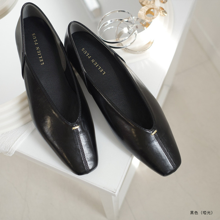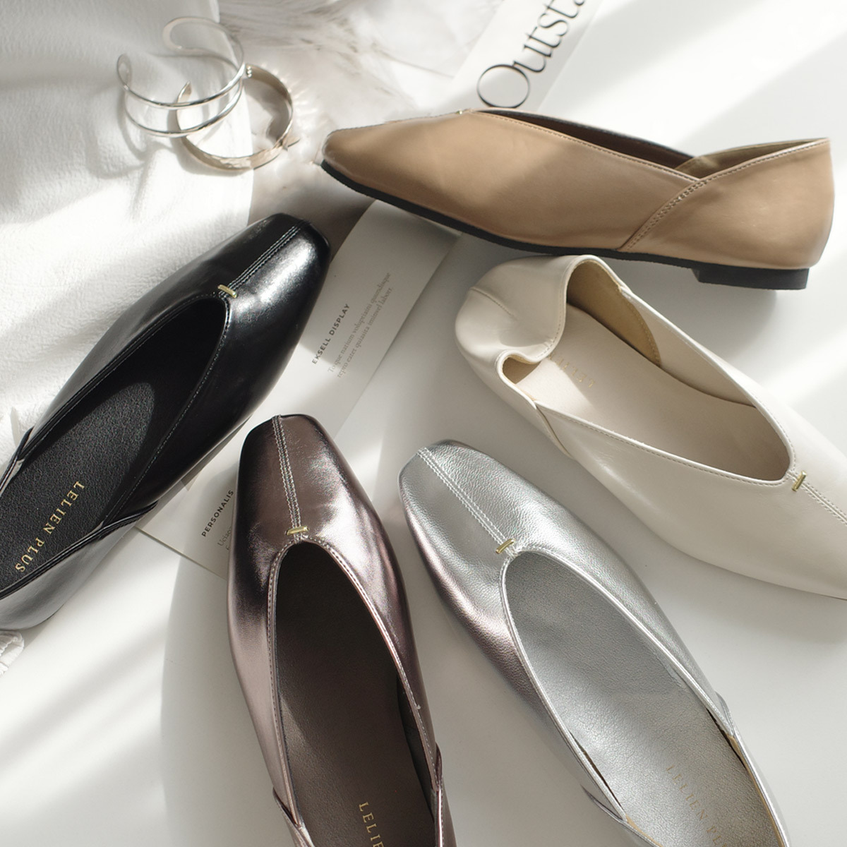 柔軟舒適的平底鞋,方型鞋頭搭配中縫線與金飾,打造低調的老錢風格。