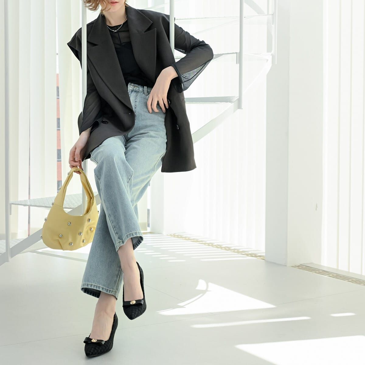 帶點成熟感的蝴蝶結裝飾,打造不過分甜美的大人可愛風格。