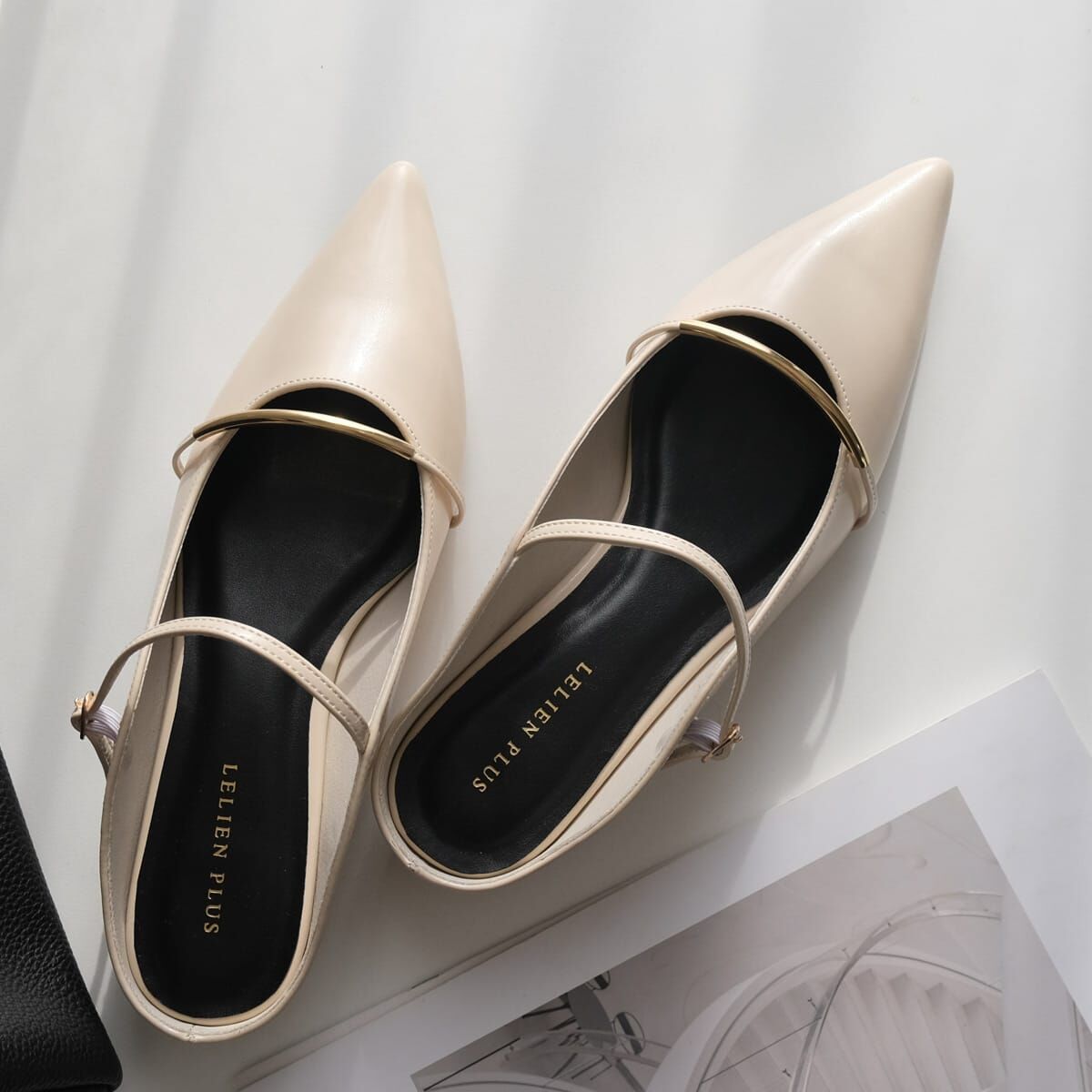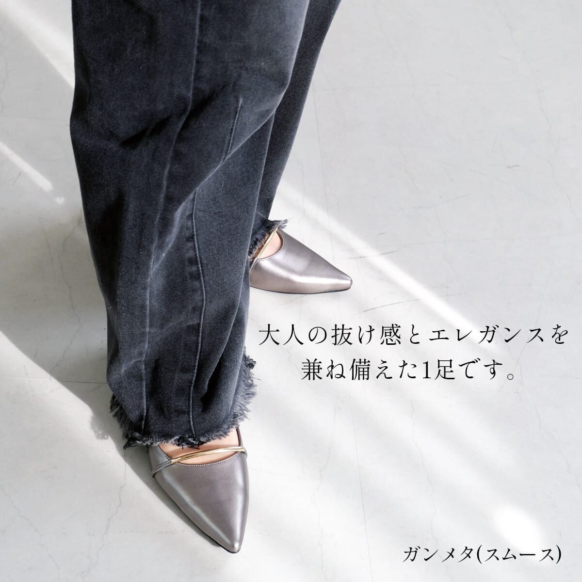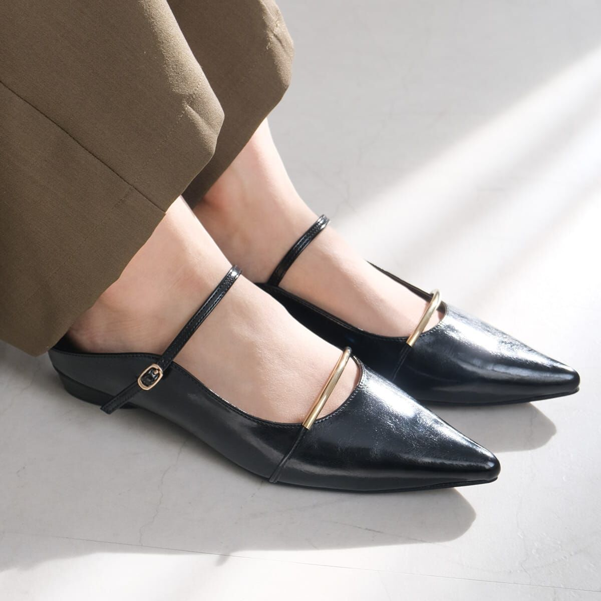 纖細優雅的金色橫條閃耀光澤,為足下增添奢華氣息。