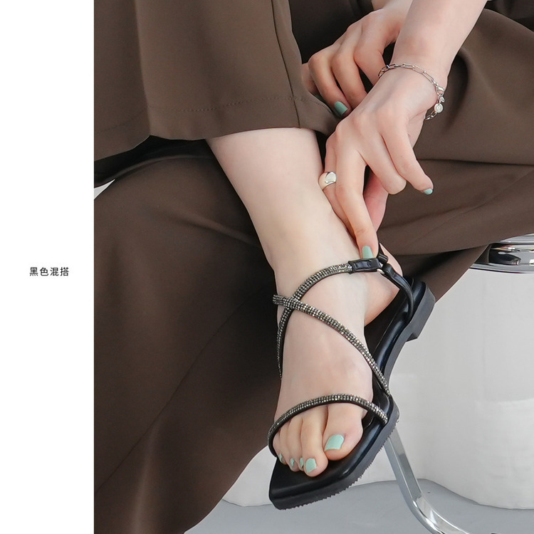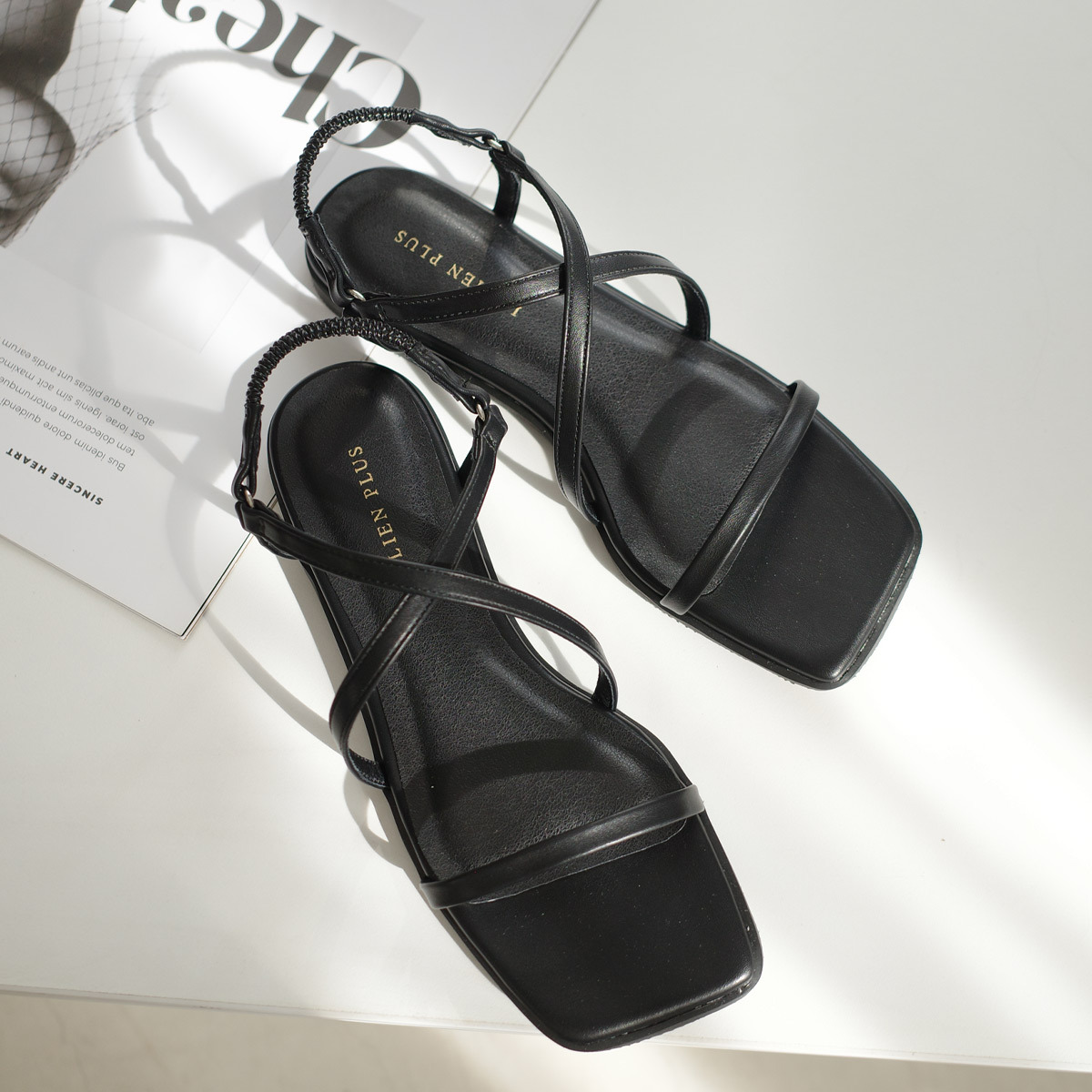 鬆緊帶設計的平底涼鞋,單手3秒即可穿上!交叉細帶,讓行走更穩健。