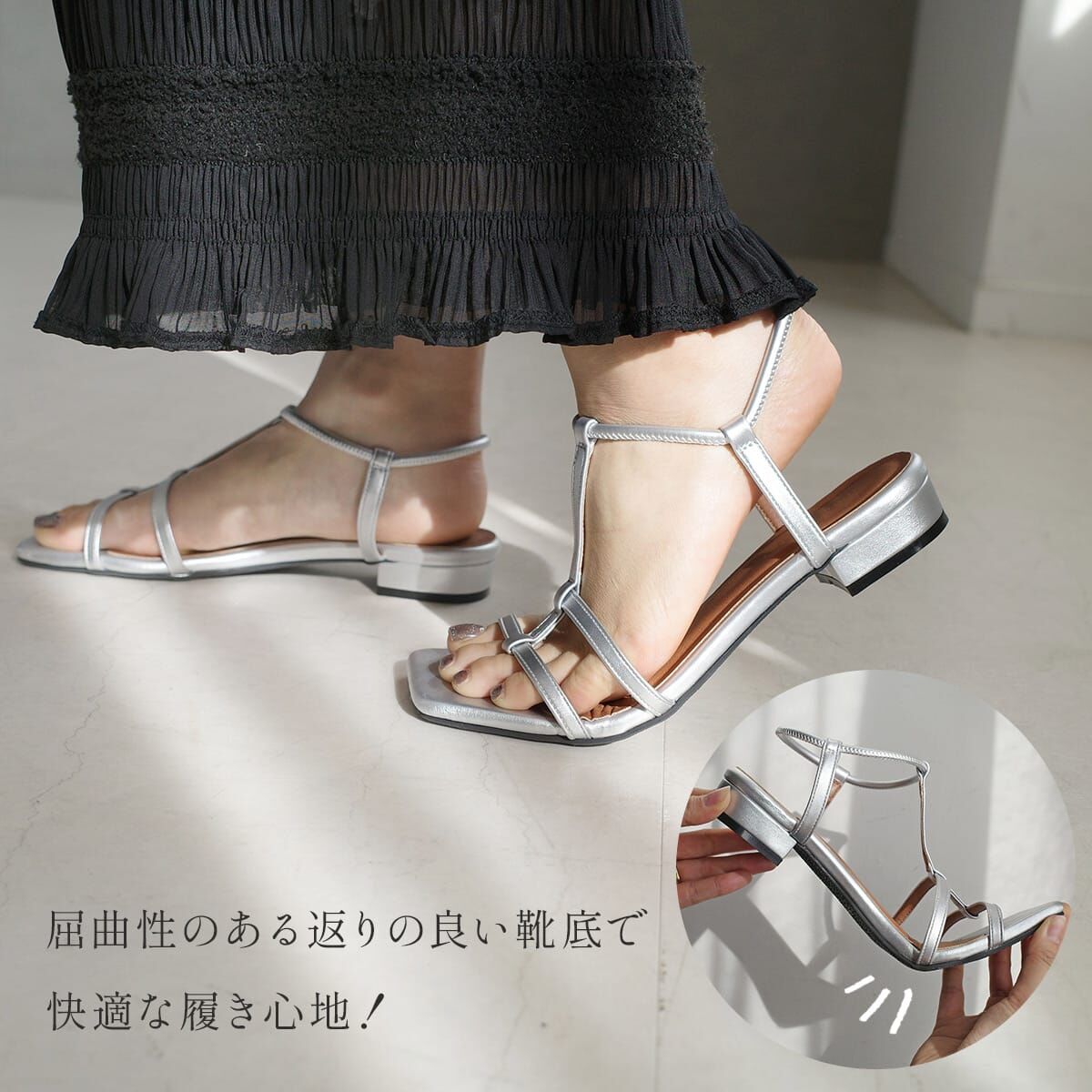 為忙碌日常而生的彈性帶涼鞋。