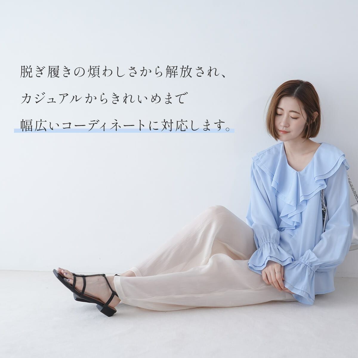 試穿尺寸[L] / 赤腳試穿 ≪我選這個尺寸!≫ 全体的にちょうどいいです。甲のストラップもちょうどよく、足首のストラップもフィットします。 試穿尺寸[LL] / 赤腳試穿 こちらの尺寸でもいいですが、甲のストラップが少し緩いです。 |