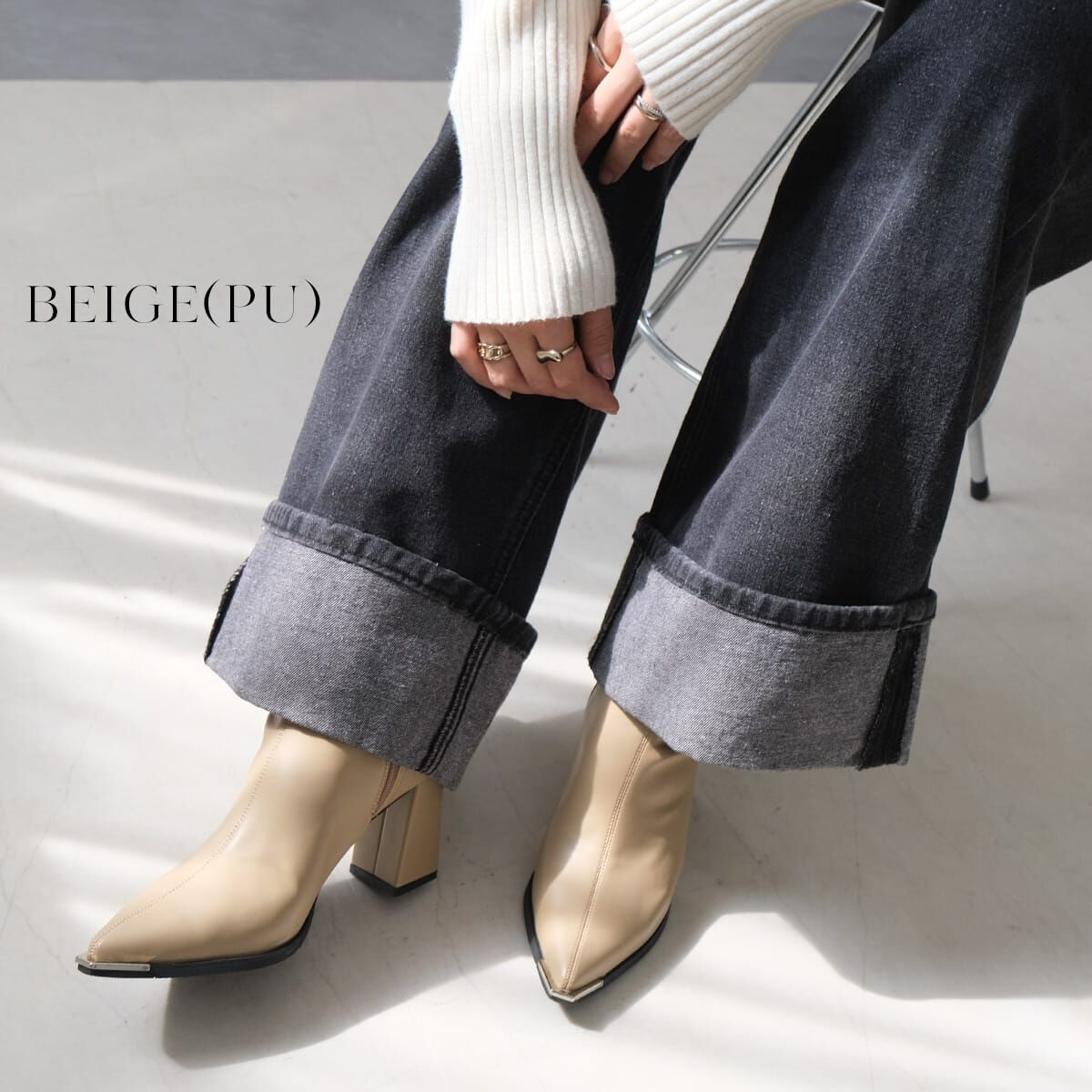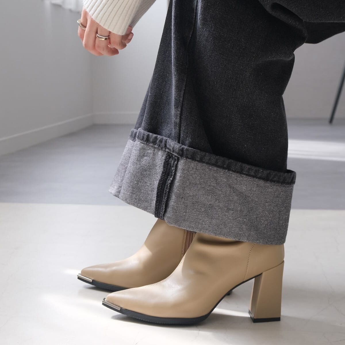 兼顧舒適與美腿效果的尖頭彈力靴。