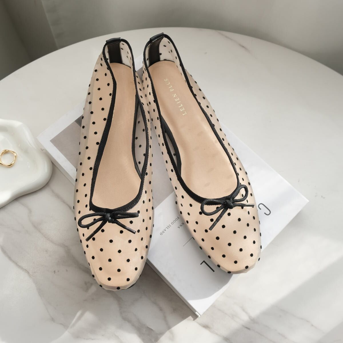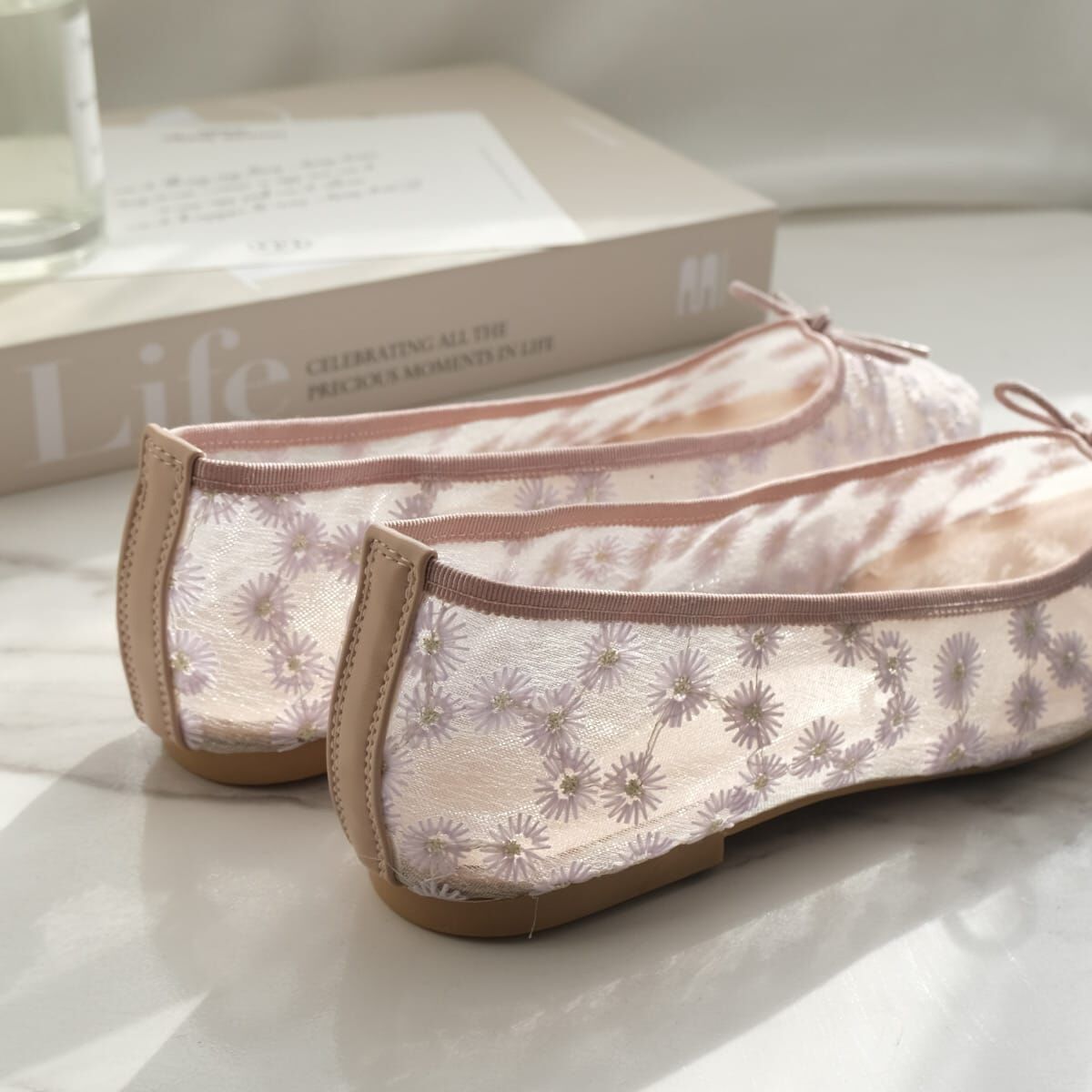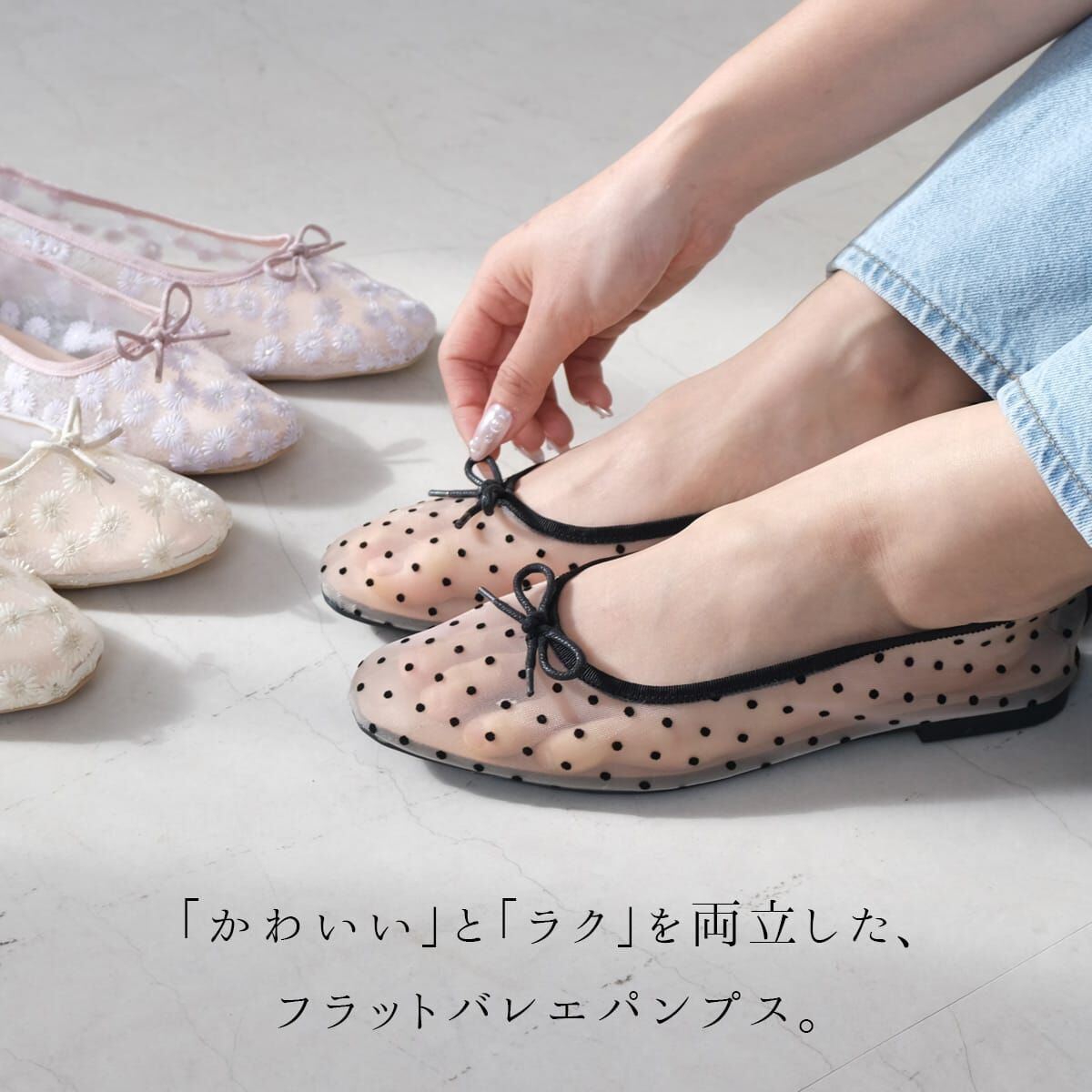 輕盈的網紗材質搭配精緻小巧的蝴蝶結,打造出柔美氣質的一雙鞋款。