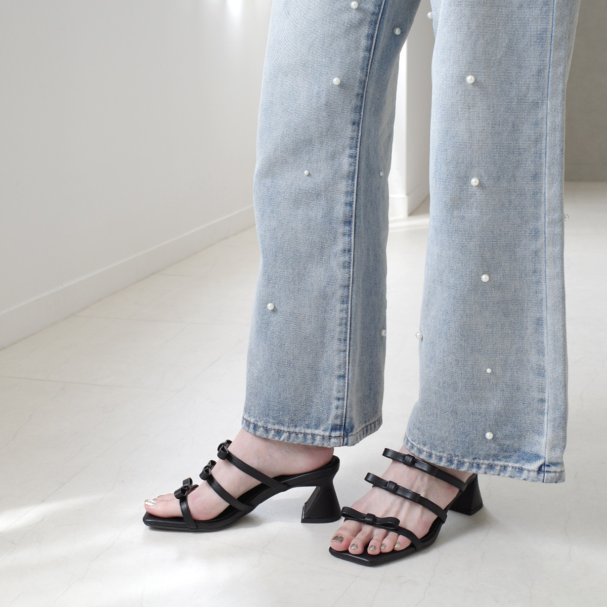 試穿尺寸[M] / 赤腳試穿 ≪我選這個尺寸!≫ 長さは足がギリギリ収まり、鞋面寬度も丁度良く履けます。 小さめのリボンが上品で大人の女性でも取り入れやすそうです。
