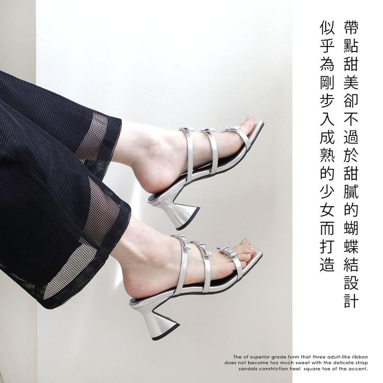 採用錐形鞋跟和方頭設計,蝴蝶結造型可甜可鹽。