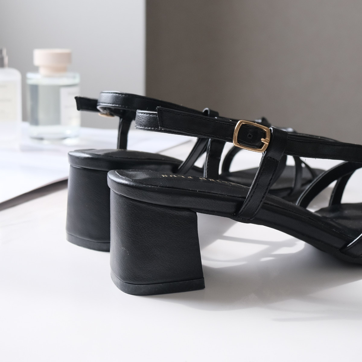 試穿尺寸[S] / 赤腳試穿 歩いているとかかとストラップがずれそうになります。 |